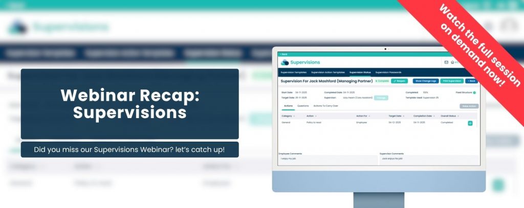 Did you miss our Supervisions webinar? Let’s catch up! Thank you to everyone who joined our most recent Webinar! We’re so grateful for your continued support and hope you’ve found these sessions both useful and informative.   A closer look at Supervisions in Care Control Cloud In our latest sessi0on, we explored Supervisions – a brand new tool in Care Control Cloud designed to make recording, managing and evidencing staff