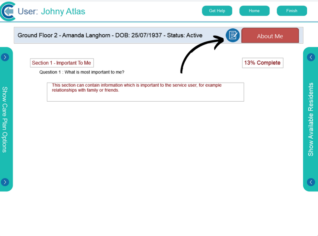 This guide will cover how to access and edit the About Me section of a service users Care Plan within Care Control Mobile.