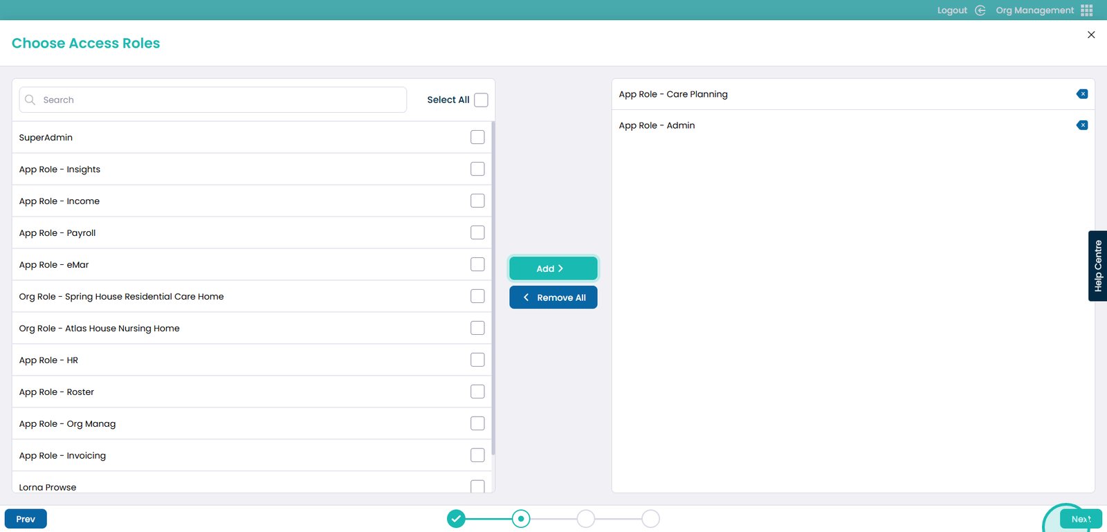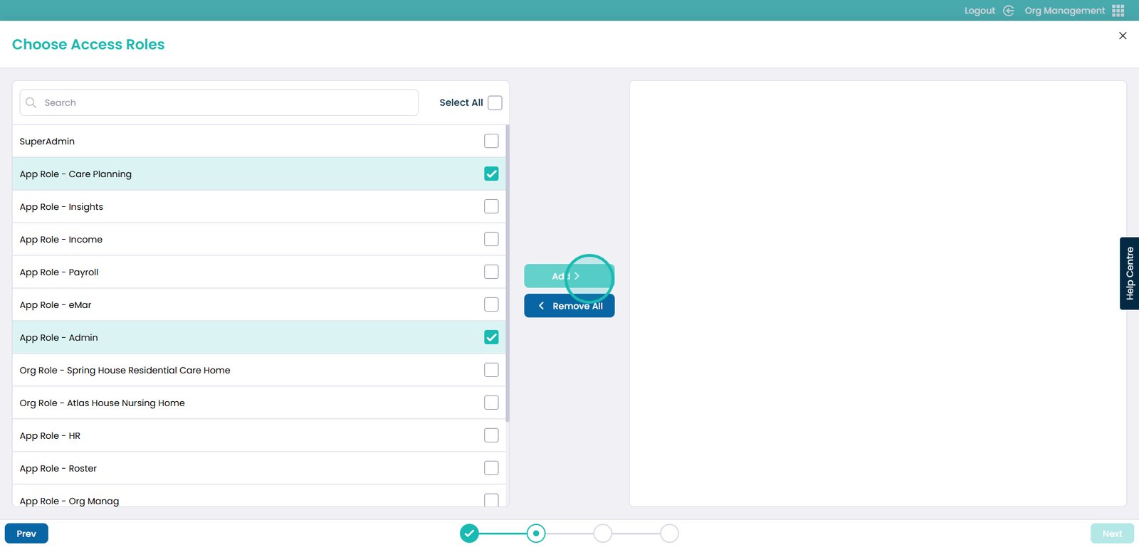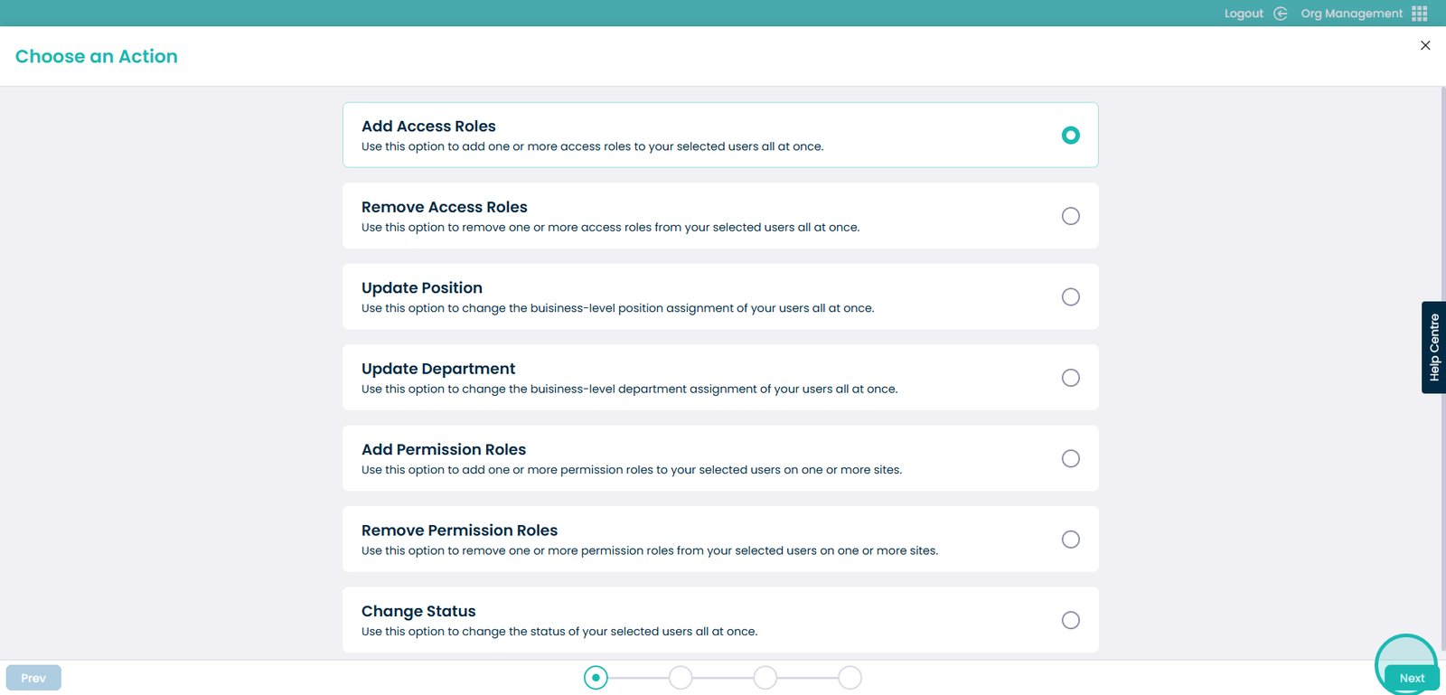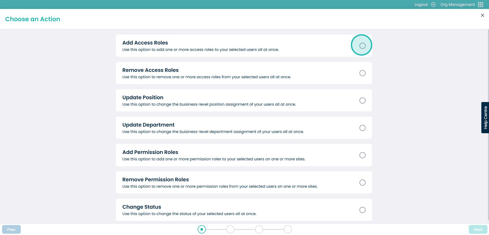 3. Here, you will see a list of available actions. For the first example, I will choose ‘Add Access Roles’.