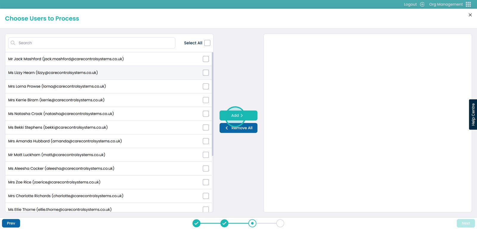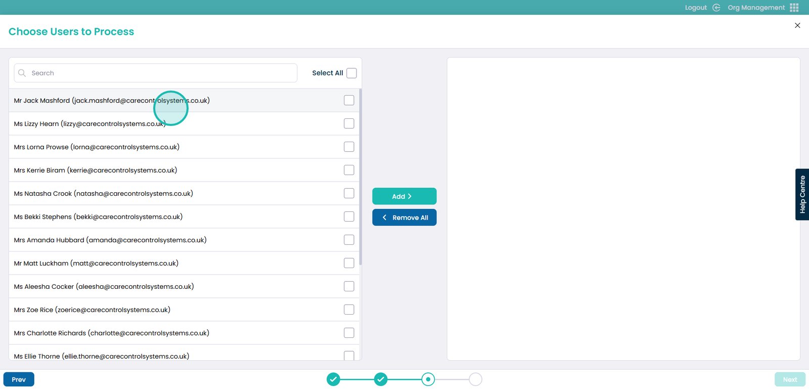 This guide will cover how to perform organisation management actions against multiple staff members at once