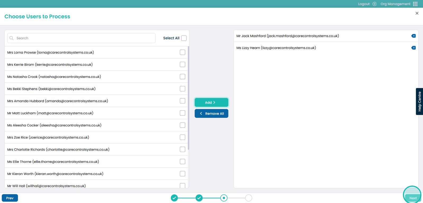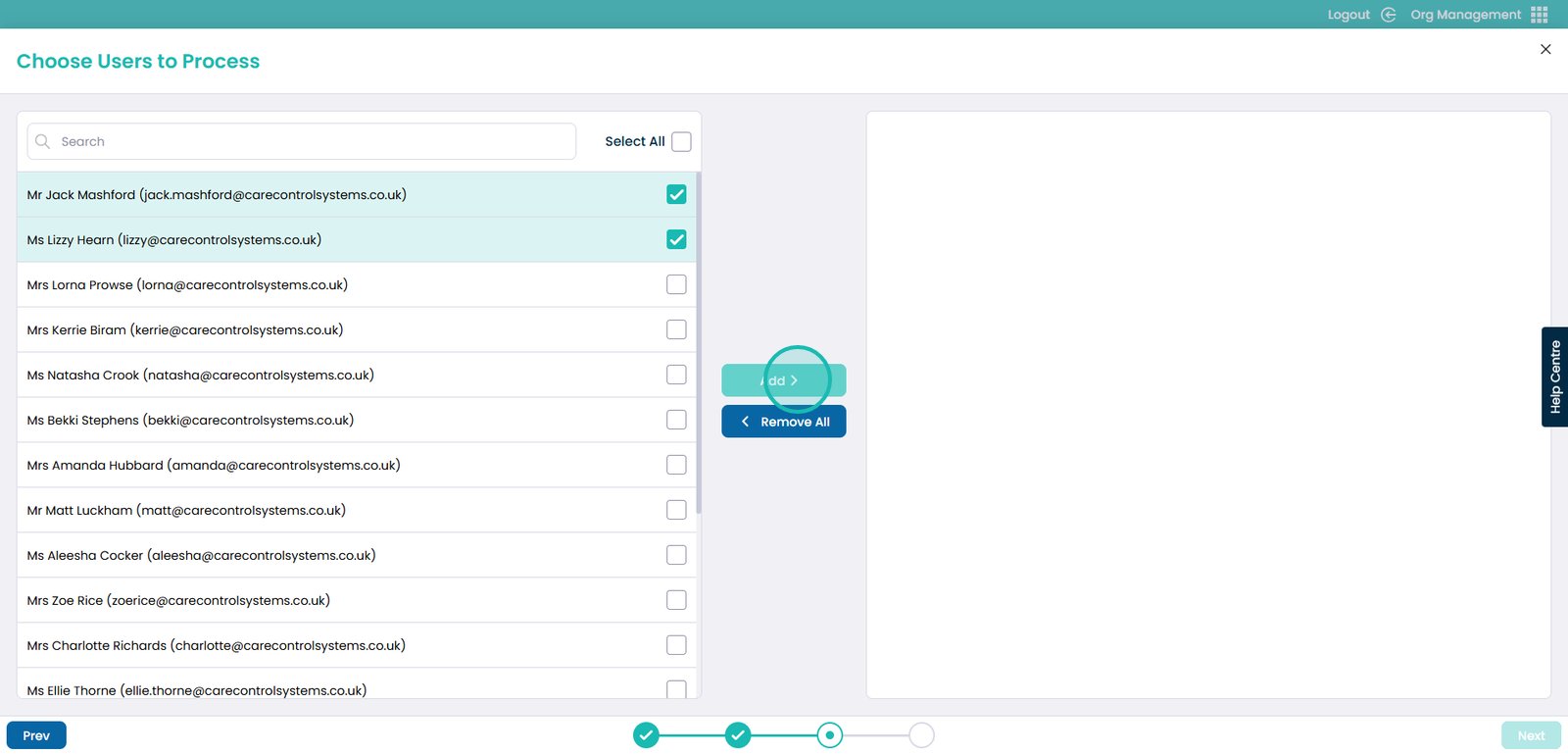 17. Click the ‘Add’ button once you had chosen the users. Then click the ‘Next’ button on the bottom right.