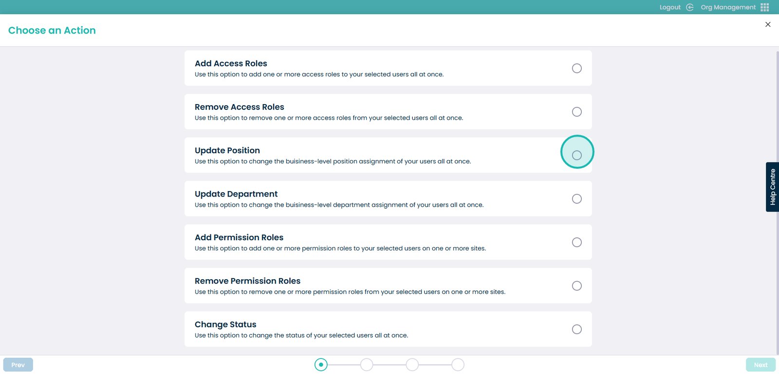 12. Another example when choosing an action is ‘Update Position’. Use the same process and select ‘next’ when done.