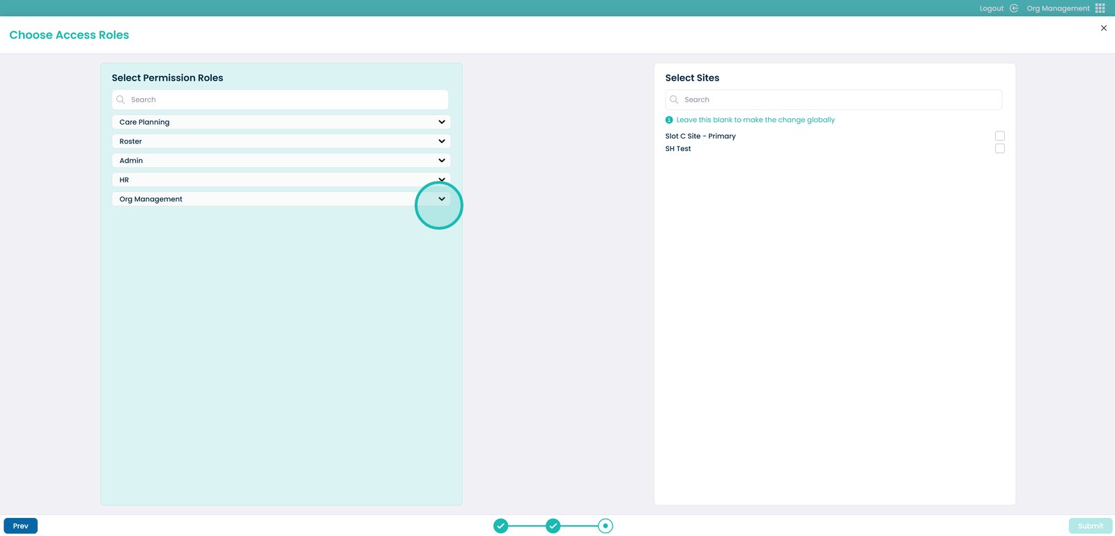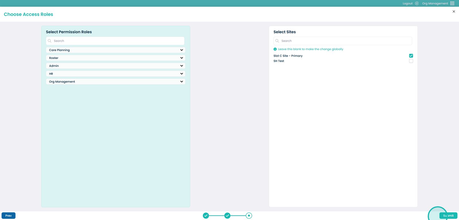 24. Once you have chosen the permission role and site, you can the click the ‘Submit’ button to save any changes.