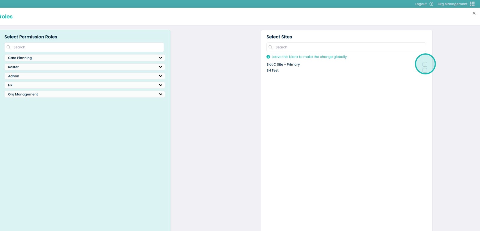 23. Once you have chosen the permission role, you can then select the site you want to add it to. You also have the option to search for a site. And if you’d like to make this change globally, do not choose a site and instead, leave this section blank.