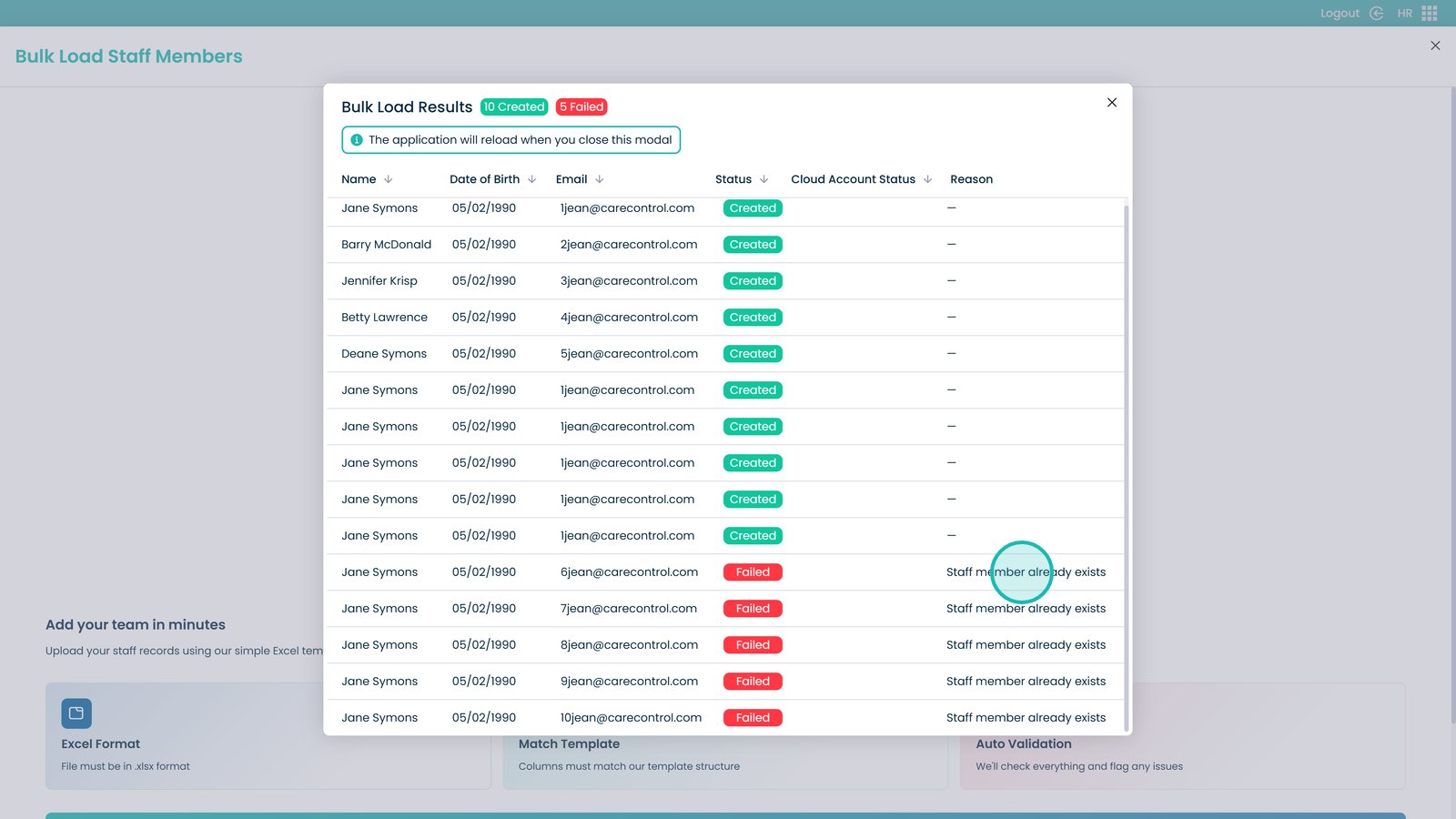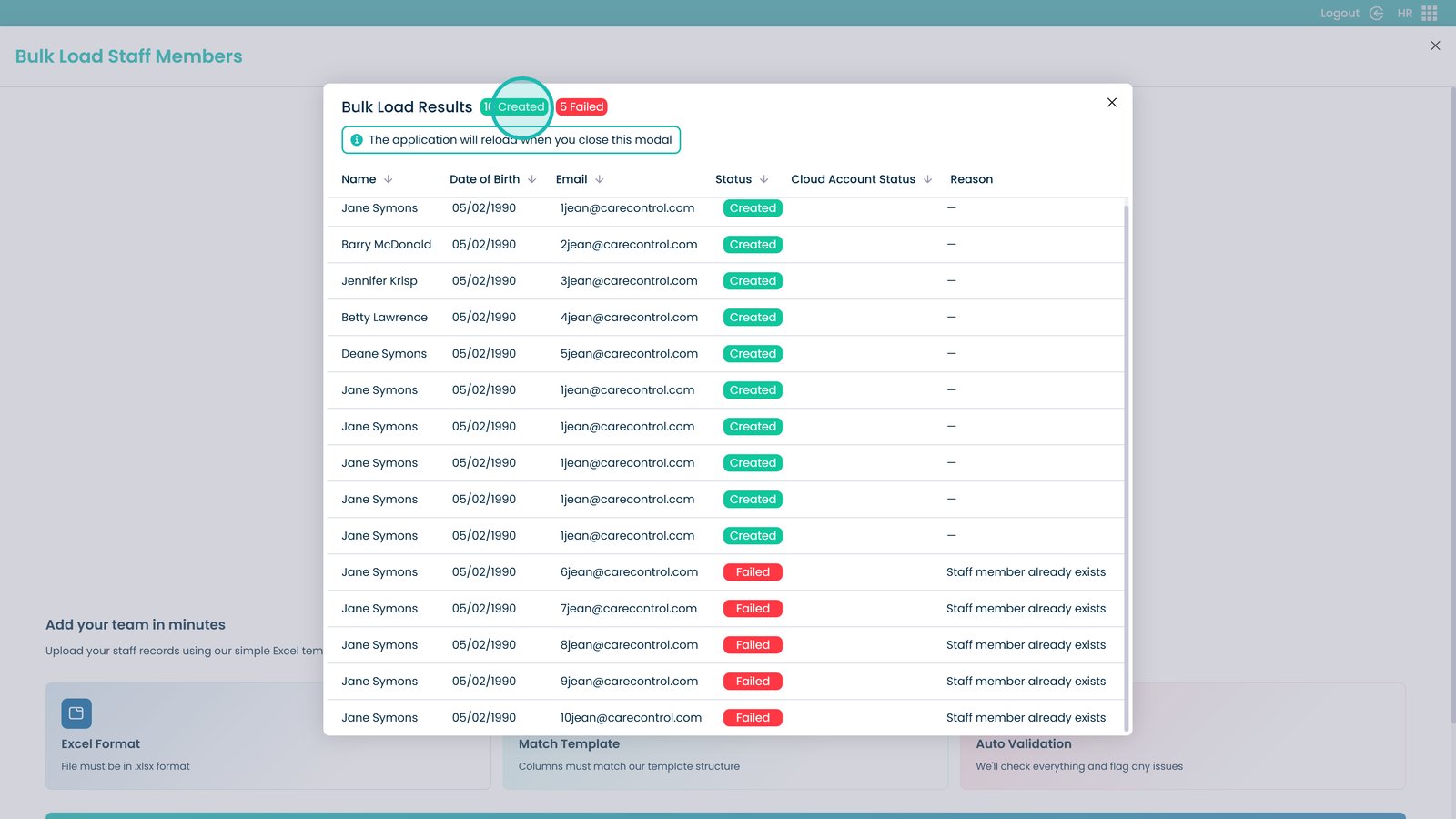 This guide will walk you through the steps of bulk loading staff members into Care Control.