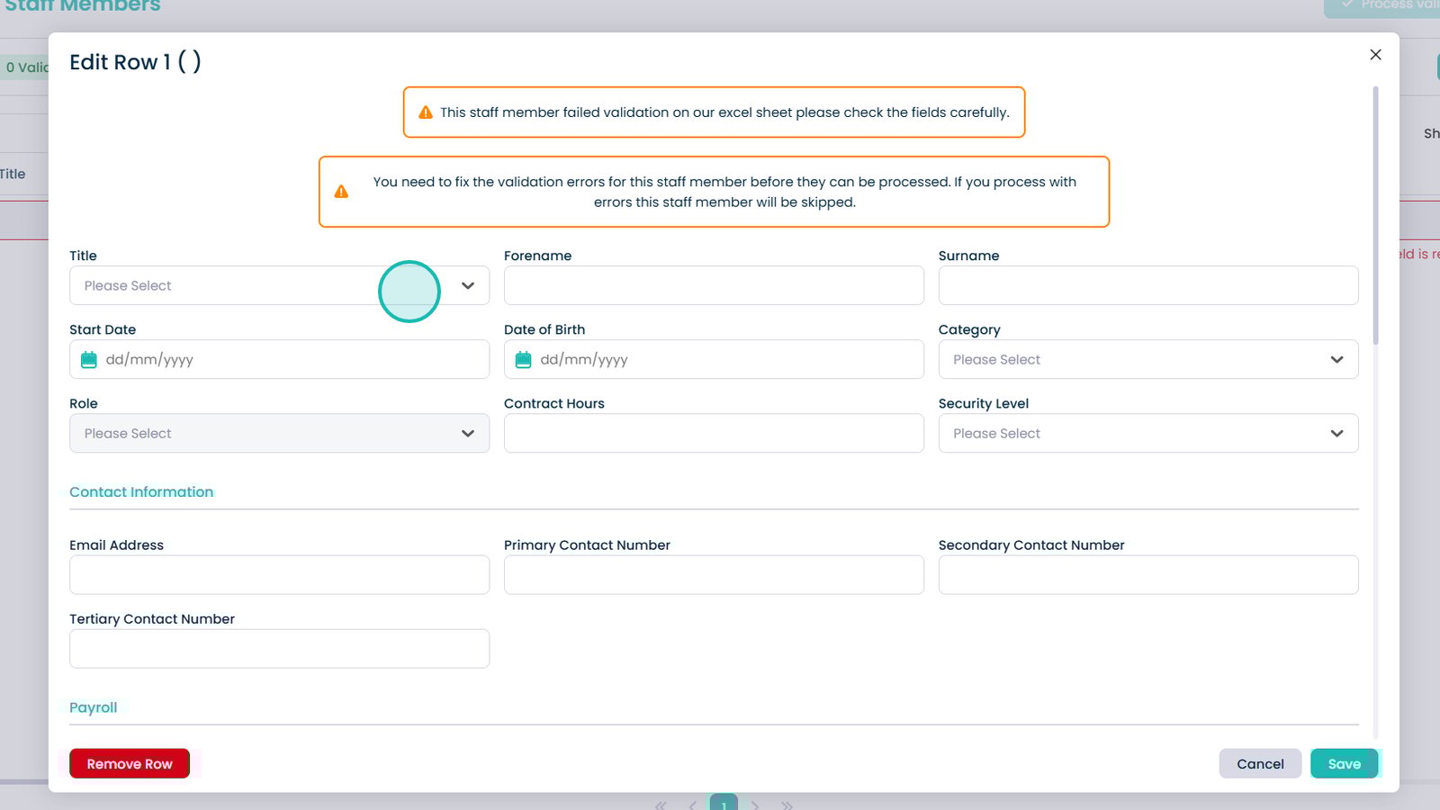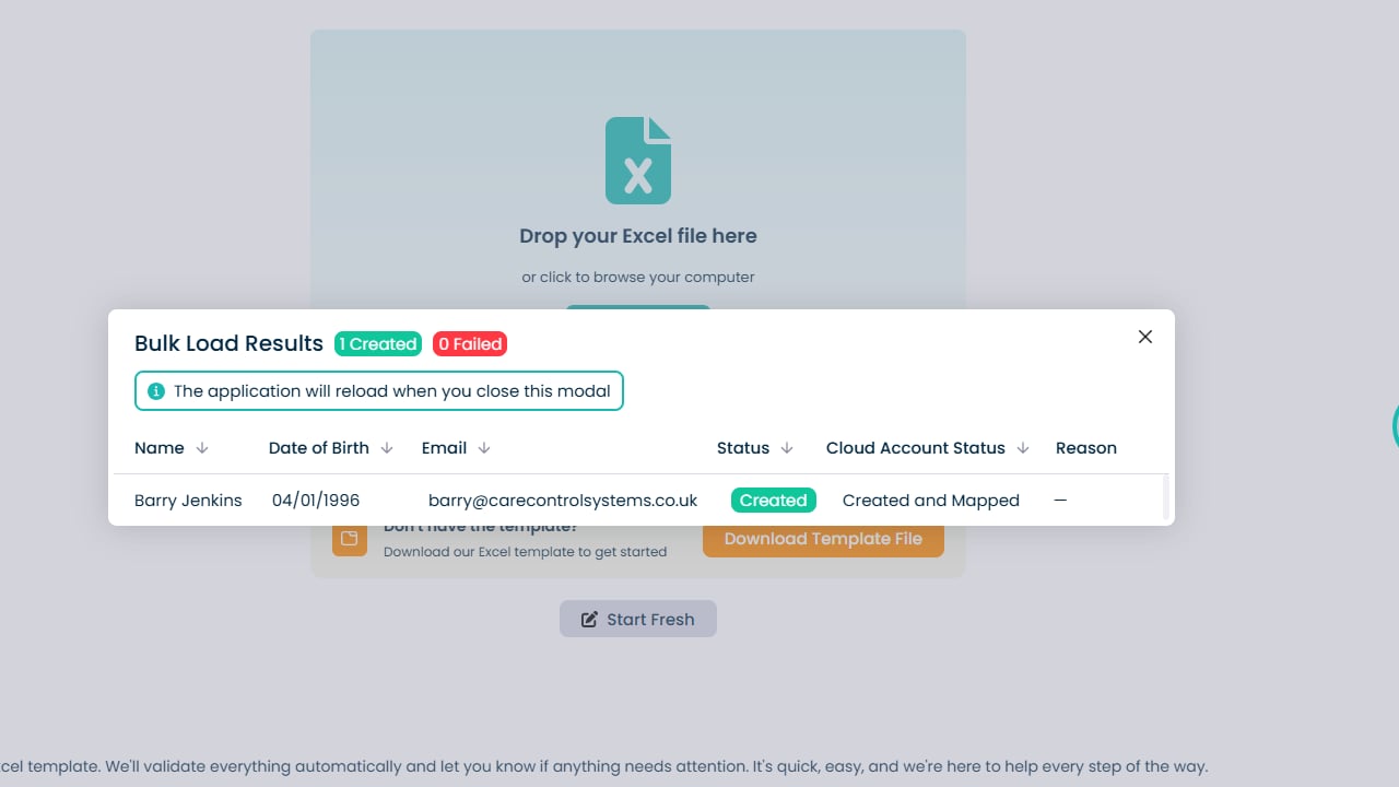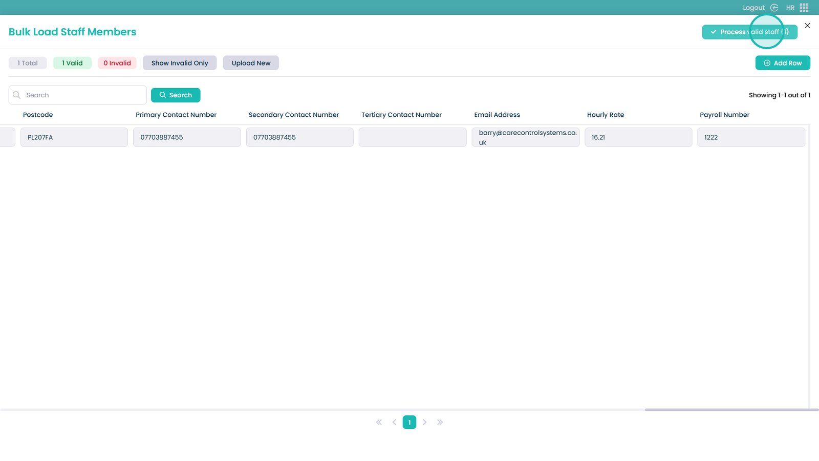 Once the file is ready, you can upload it, review any errors, and process valid records to create staff quickly and efficiently.