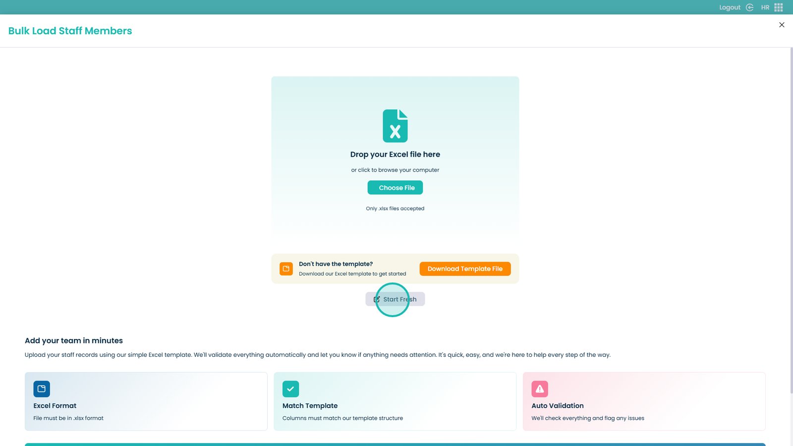You’ll begin by downloading the staff upload template from the system and completing it with your staff details.
