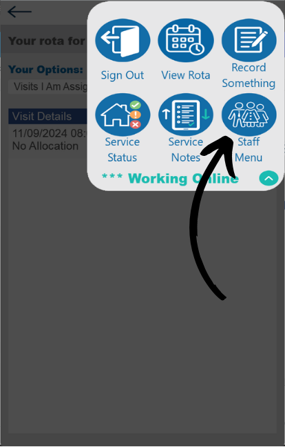 This menu will now open. From within this menu tap the Staff Menu icon.