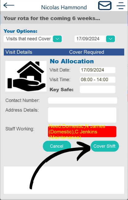 This guide will show how to cover a shift when the Pocket Home Page is set to Staff Rota.