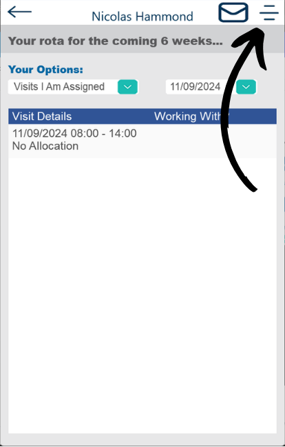 From the Rota Select screen, tap the three lines in the top right of the screen.