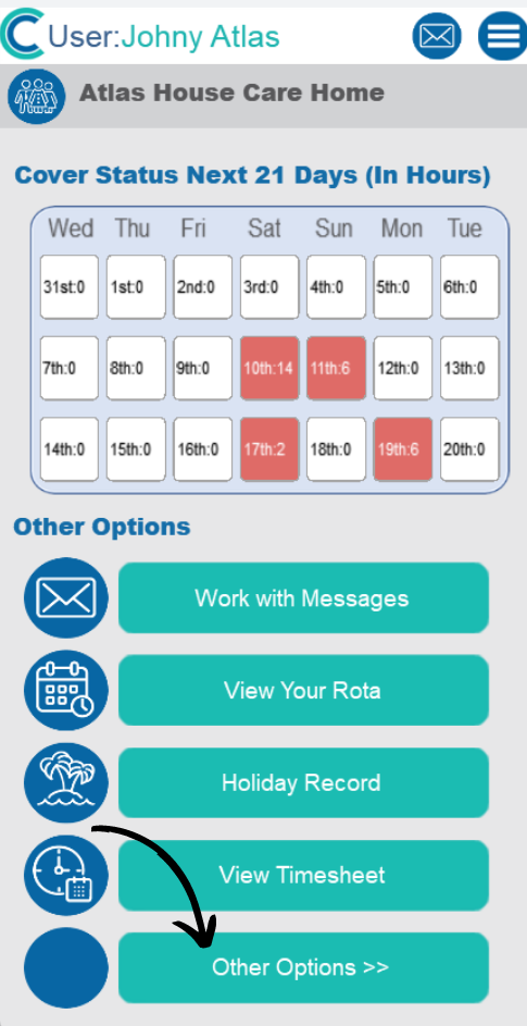 After signing into Care Control Pocket, open the menu by pressing the 3 lines in the top right corner of the screen.