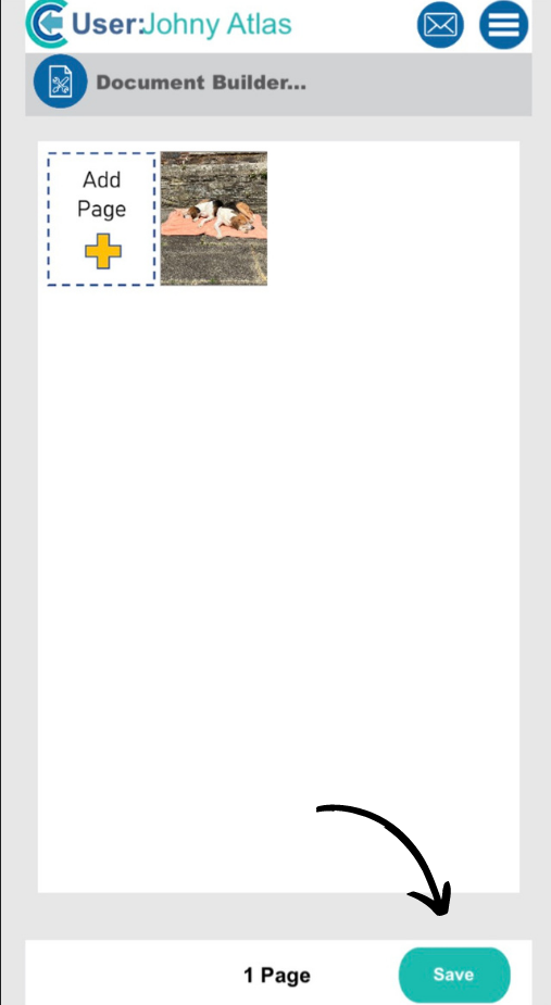After taking or loading the photo, it will show on the screen. You can choose to add more using the Add Page button, or press Save to complete the process.