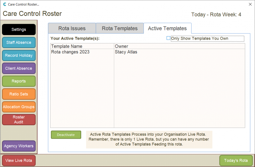 Deactivating Rota Template & Clearing the Live Rota