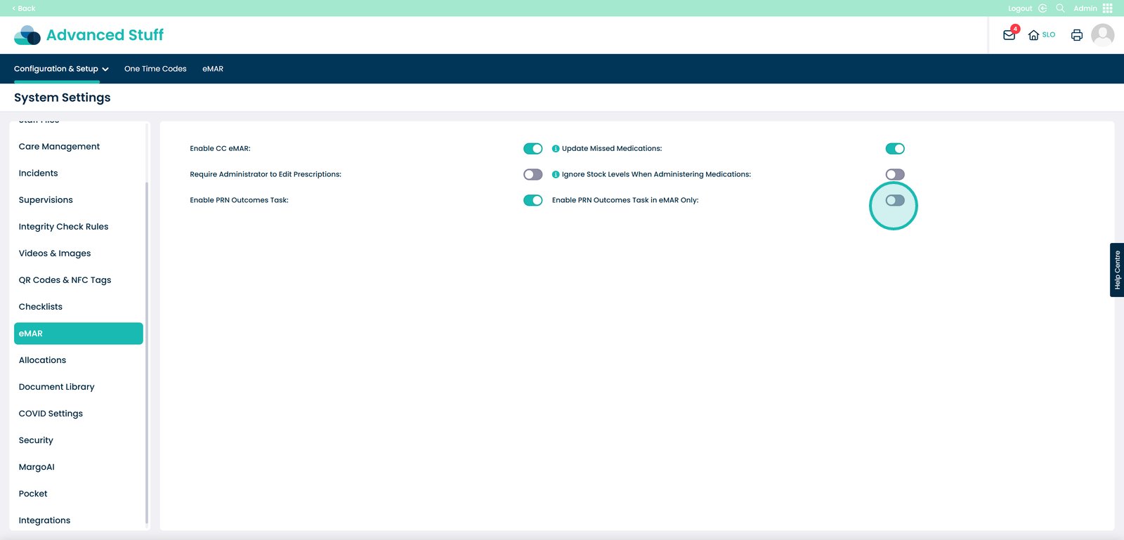You will then see a new setting named under ‘PRN Outcome Task – eMar Only’.