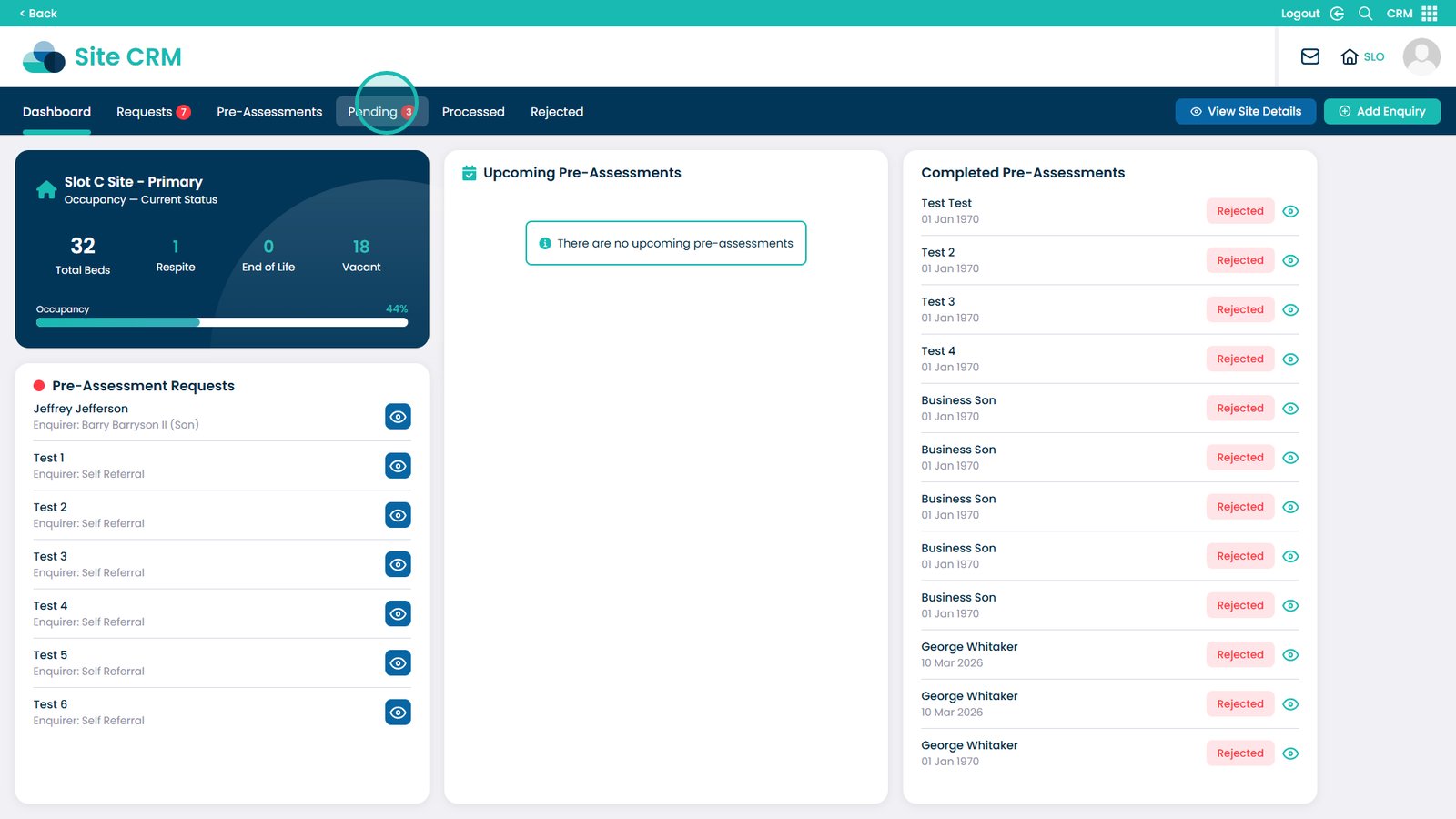 This guide explains how to review and manage pending pre-assessment requests within the CRM app. From the Dashboard area, you can view service users awaiting action, review their submitted information, and decide whether to accept or decline the request.