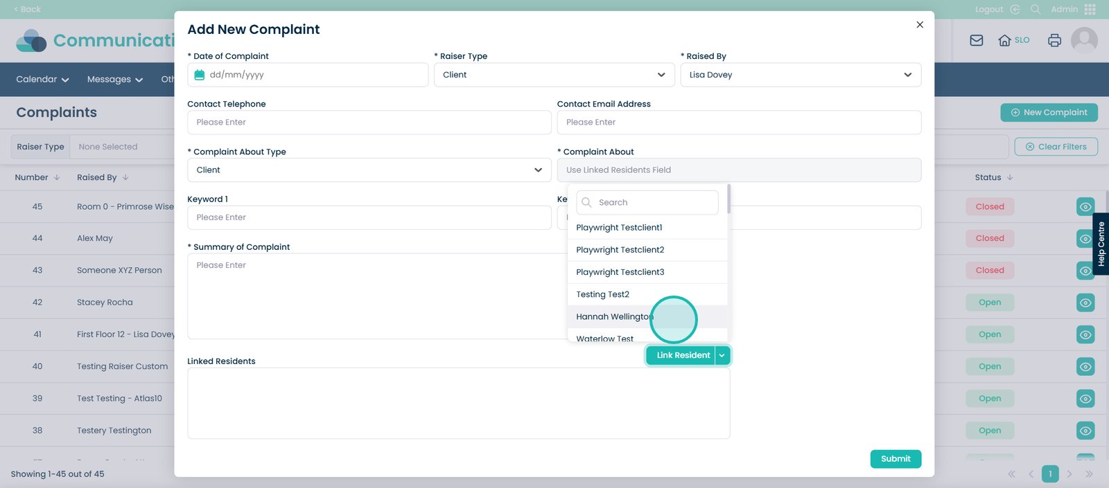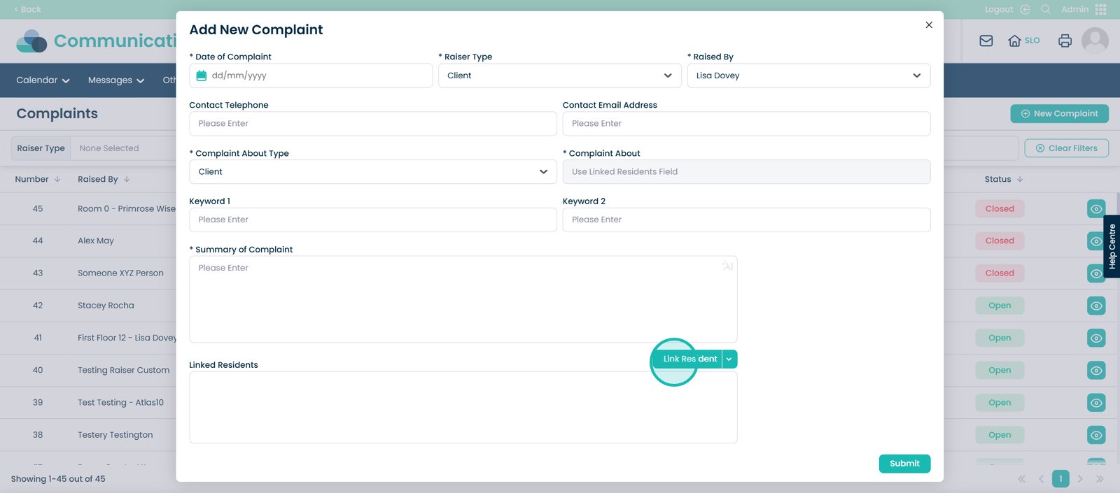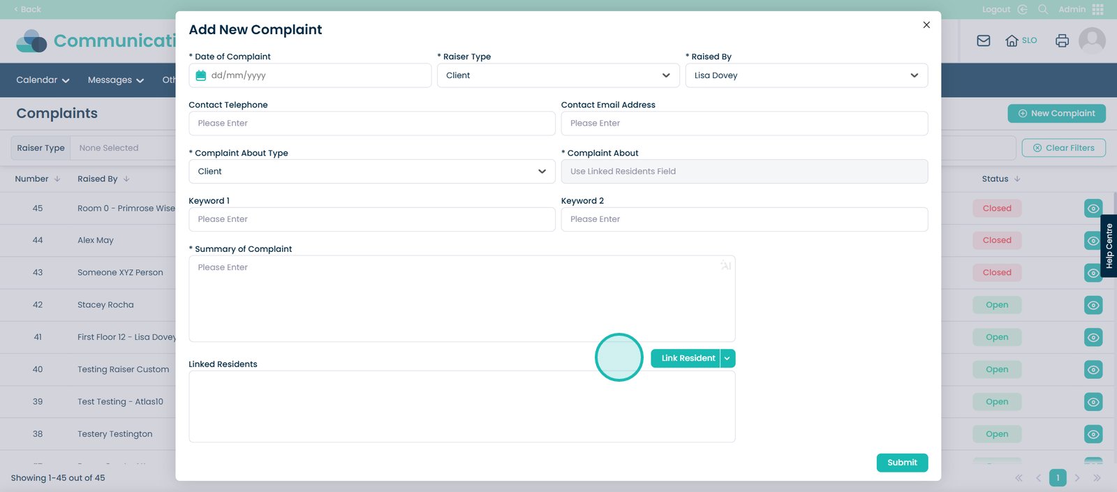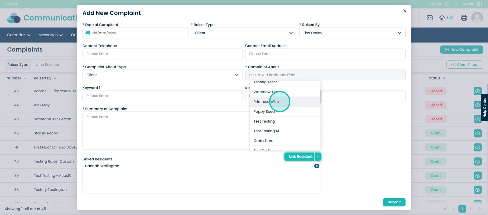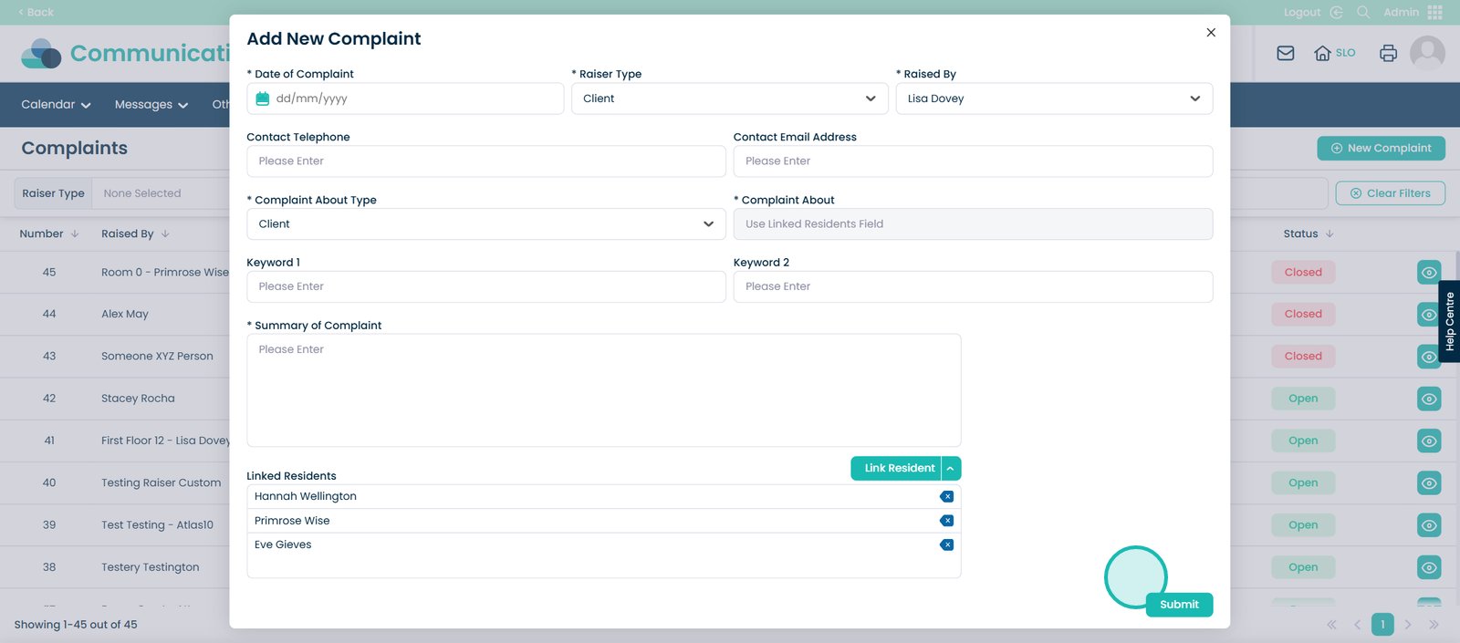 Another tool we have added to make adding a new complaint easier is the ability to link multiple service users who may be associated with the complaint.