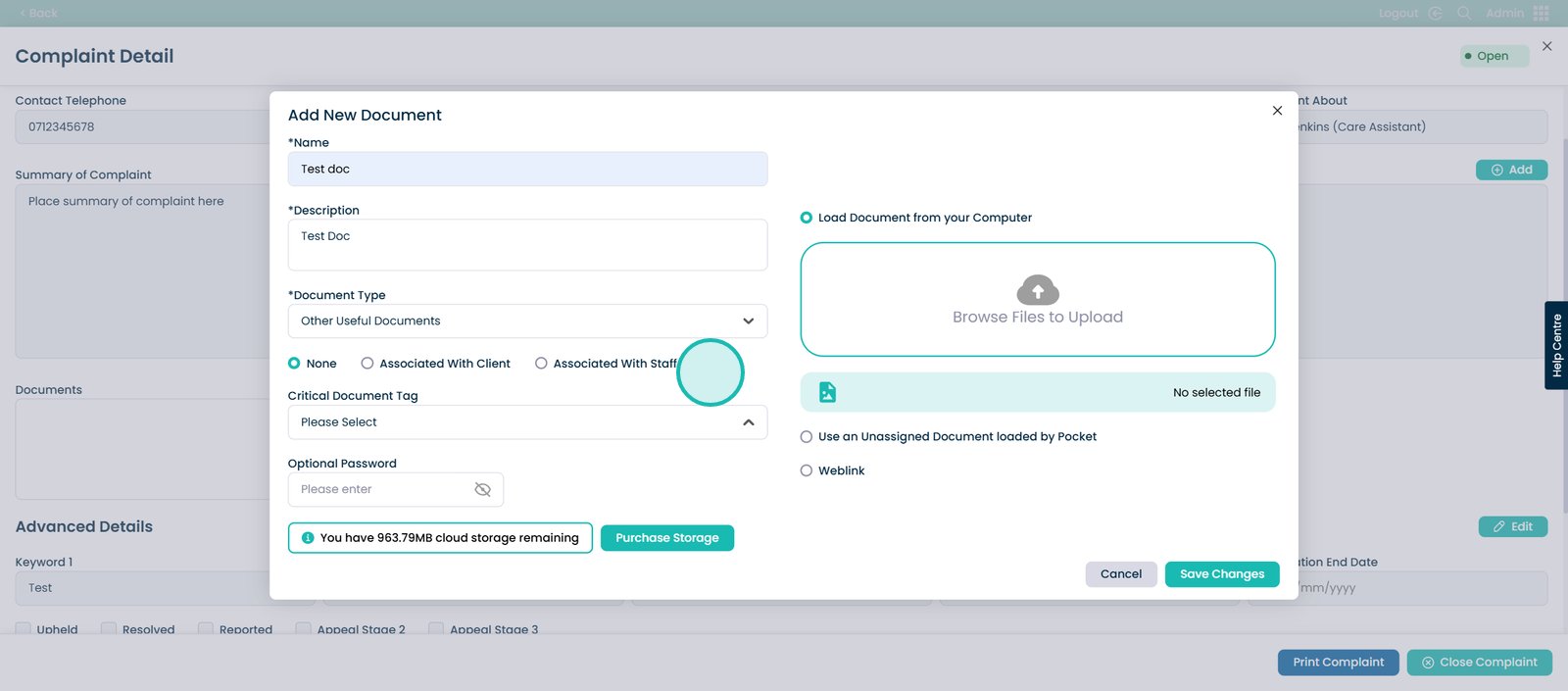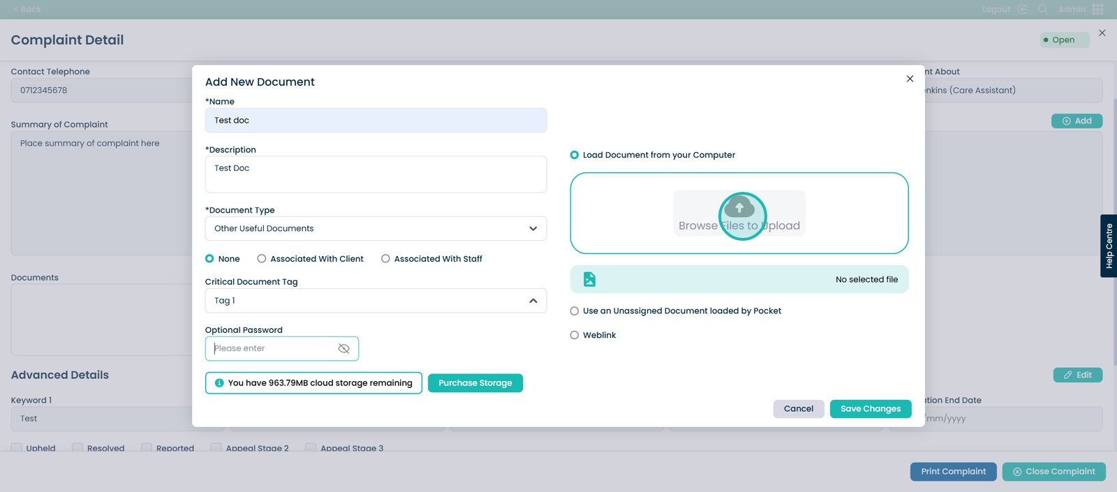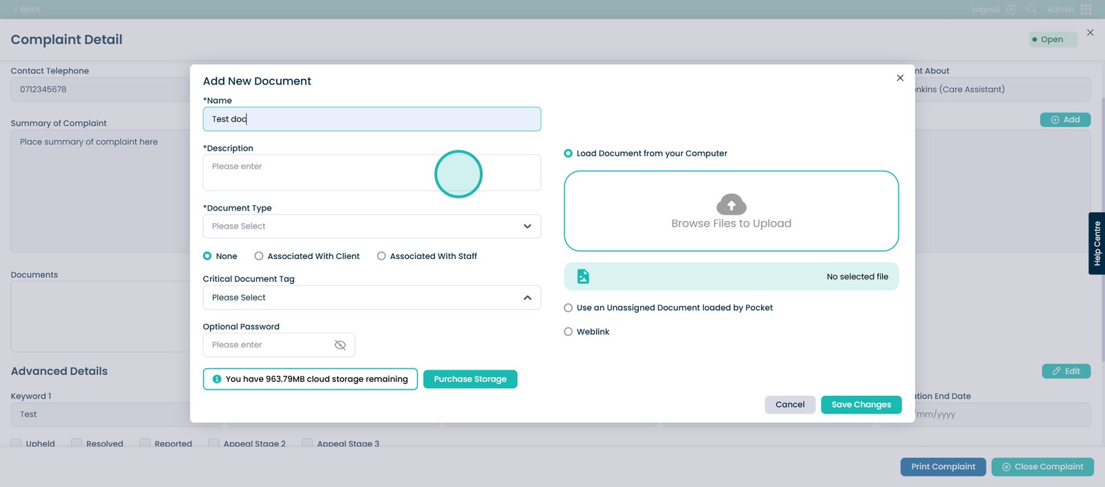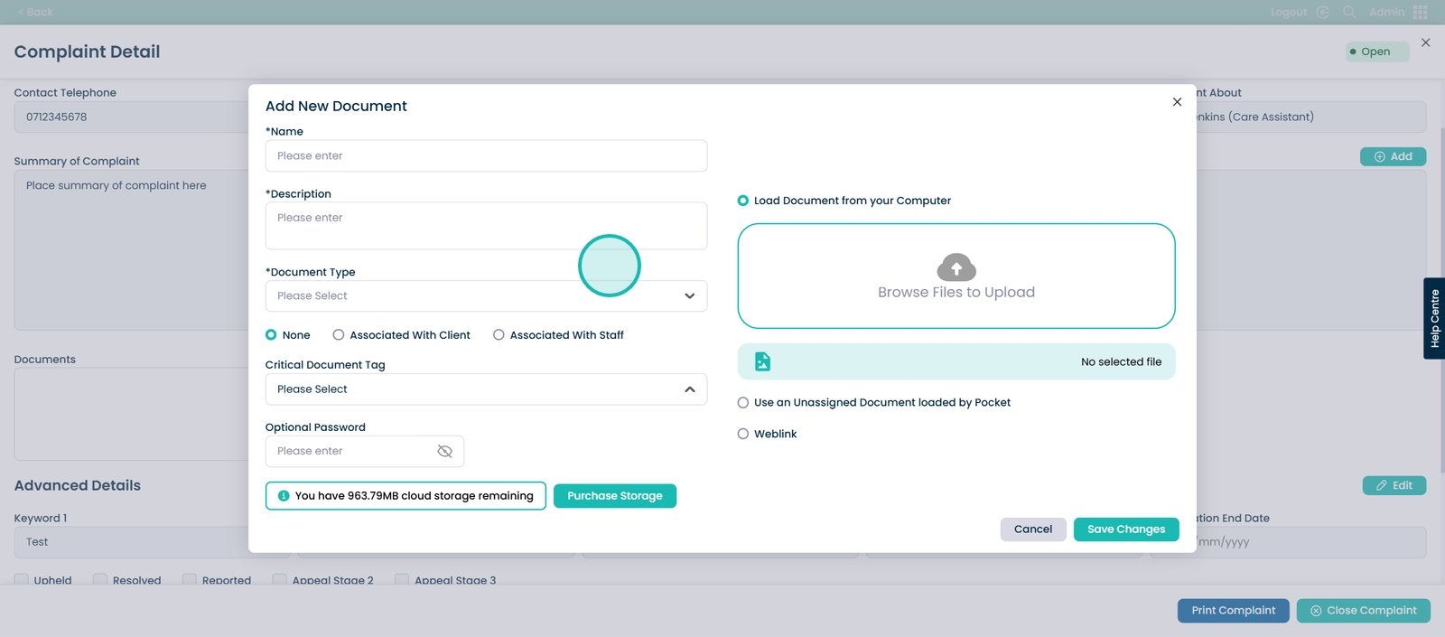 This new feature gives you a clear overview of all complaints raised within your service — whether by a service user, staff member, professional, or visitor. It helps you manage the process more effectively by allowing you to add ongoing investigatory notes, link multiple service users to a single complaint where necessary, and securely upload supporting documents with password protection to maintain confidentiality. With everything stored in one place, you can demonstrate transparency, strengthen accountability, and streamline how complaints are handled from start to finish.