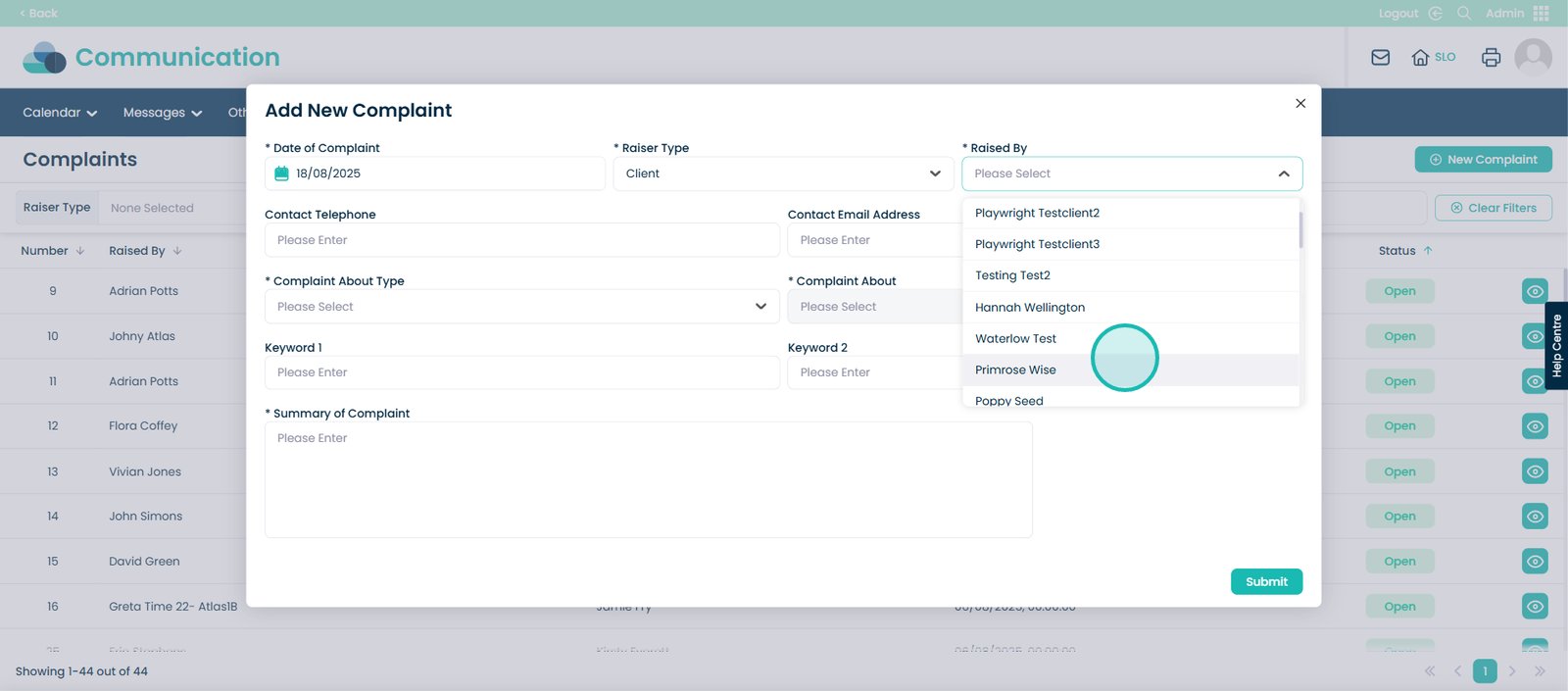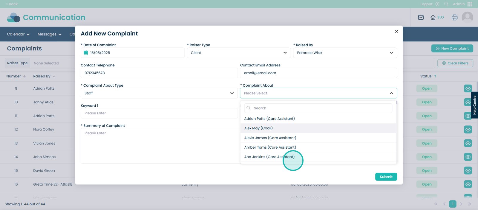 Once you have added all the service users associated with this complaint, you can then select the ‘Submit’ button.