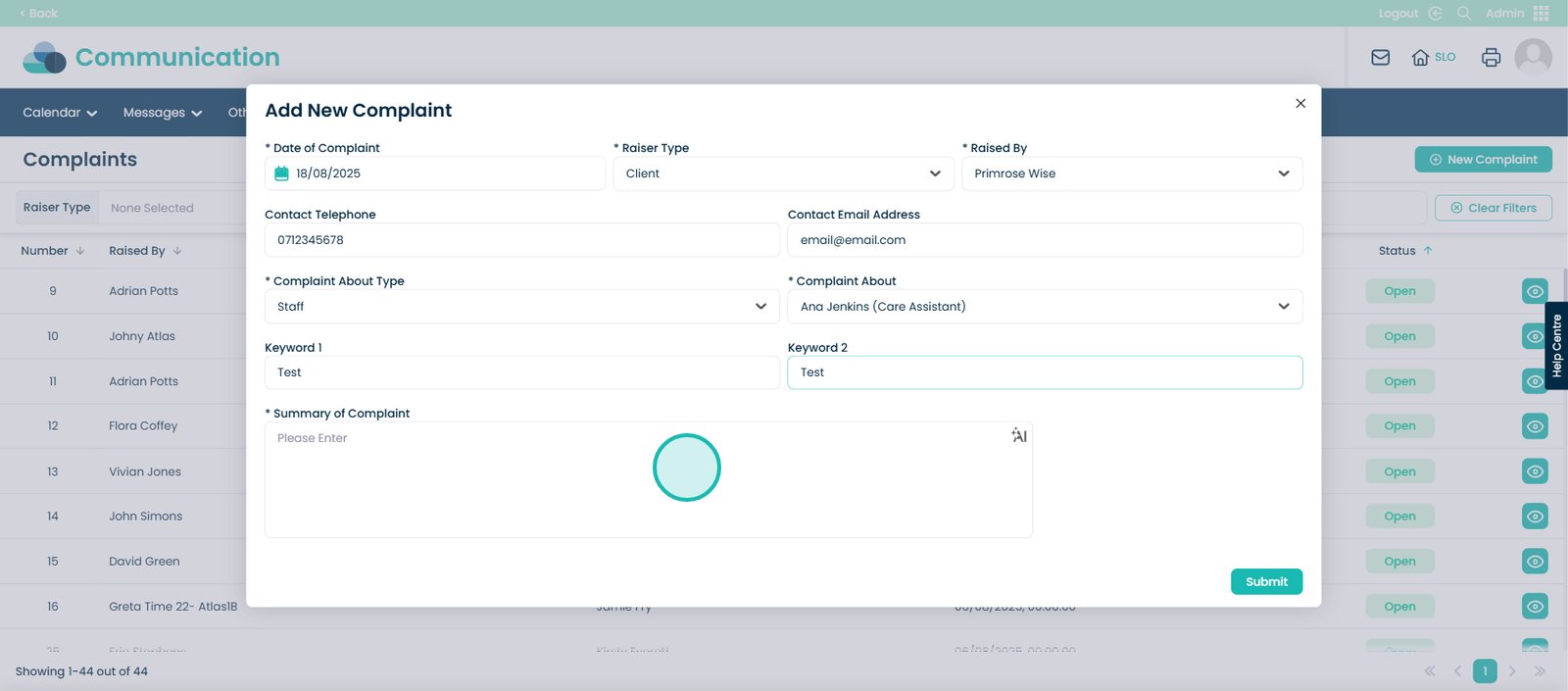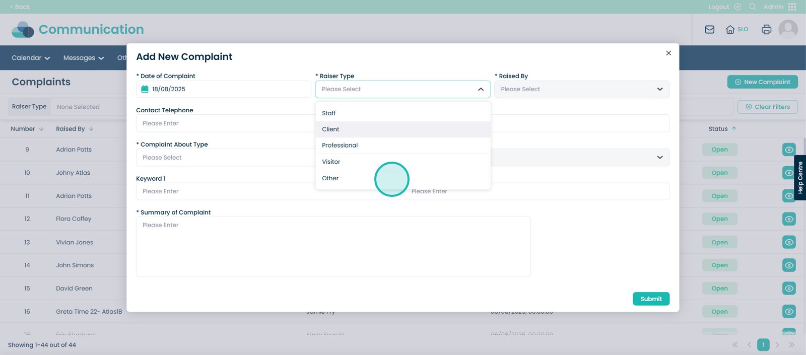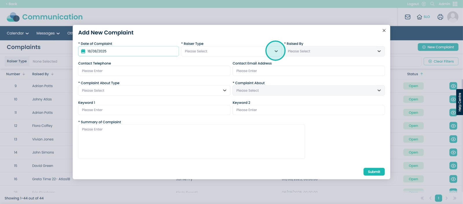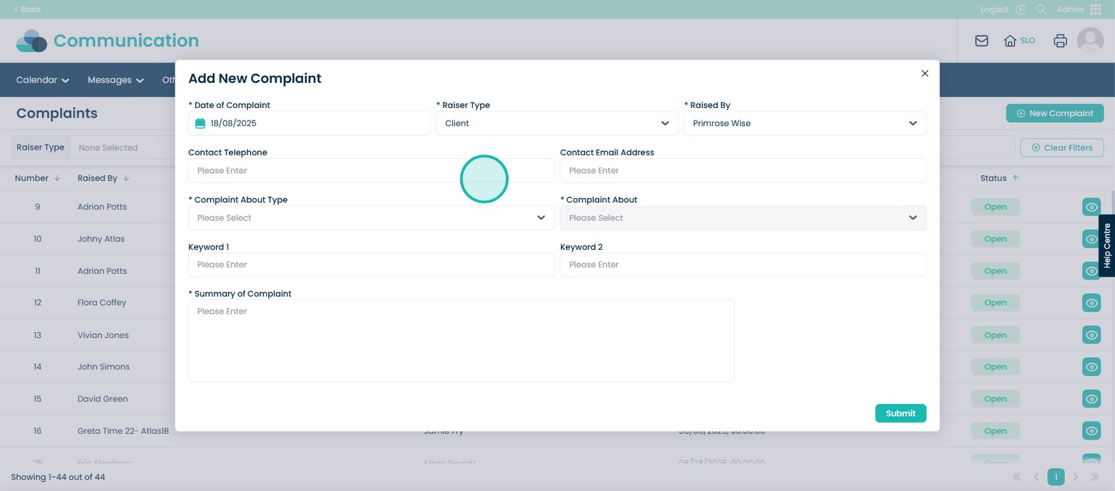 Once you have entered the details of the new complaint, select the ‘Submit’ button.