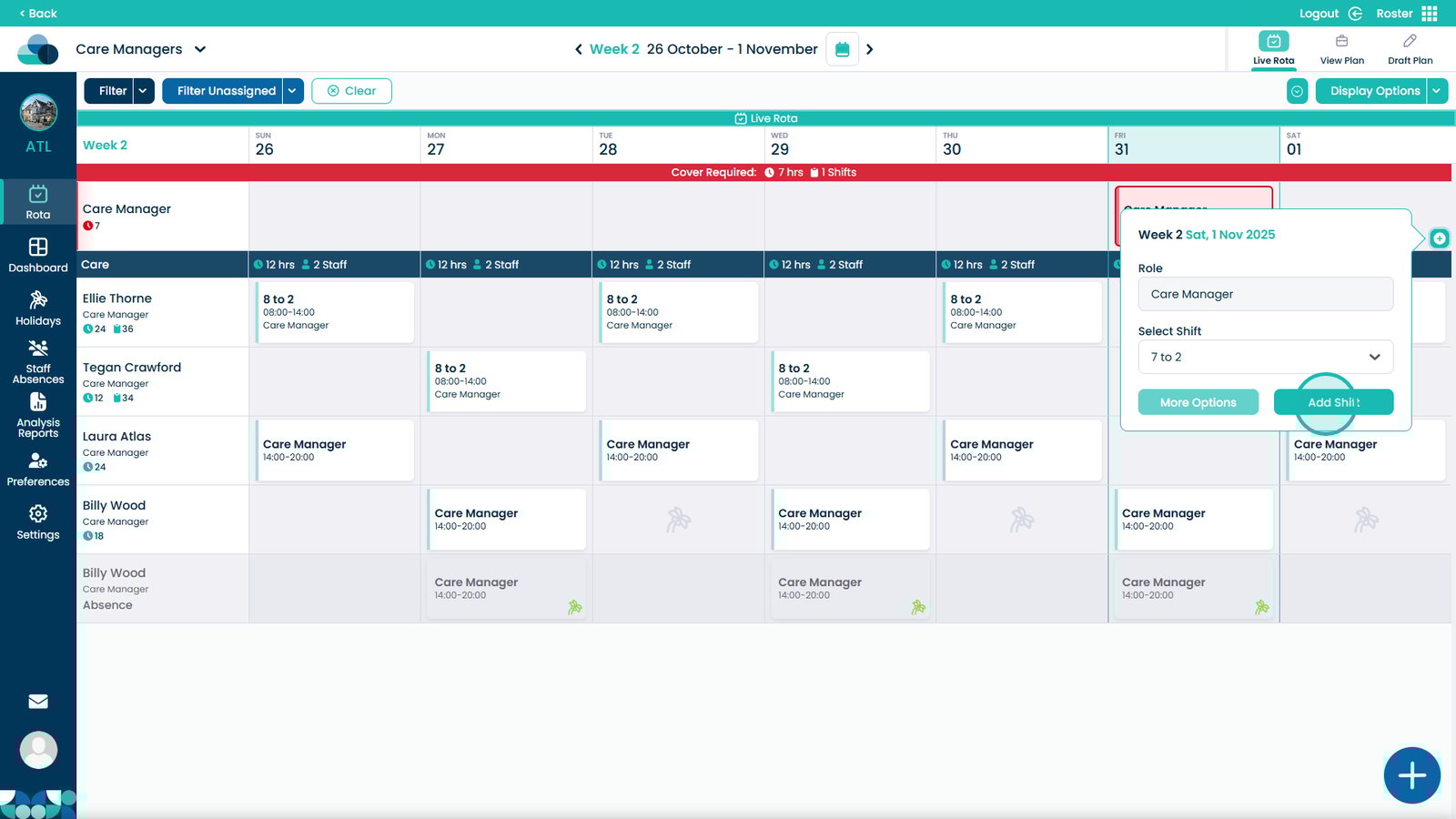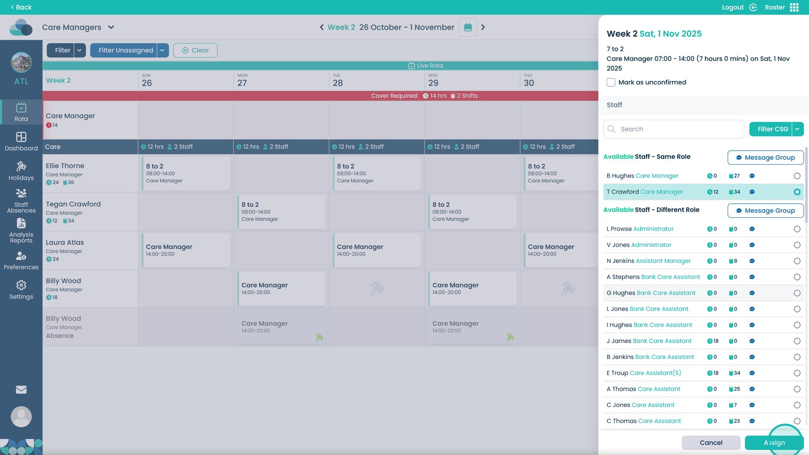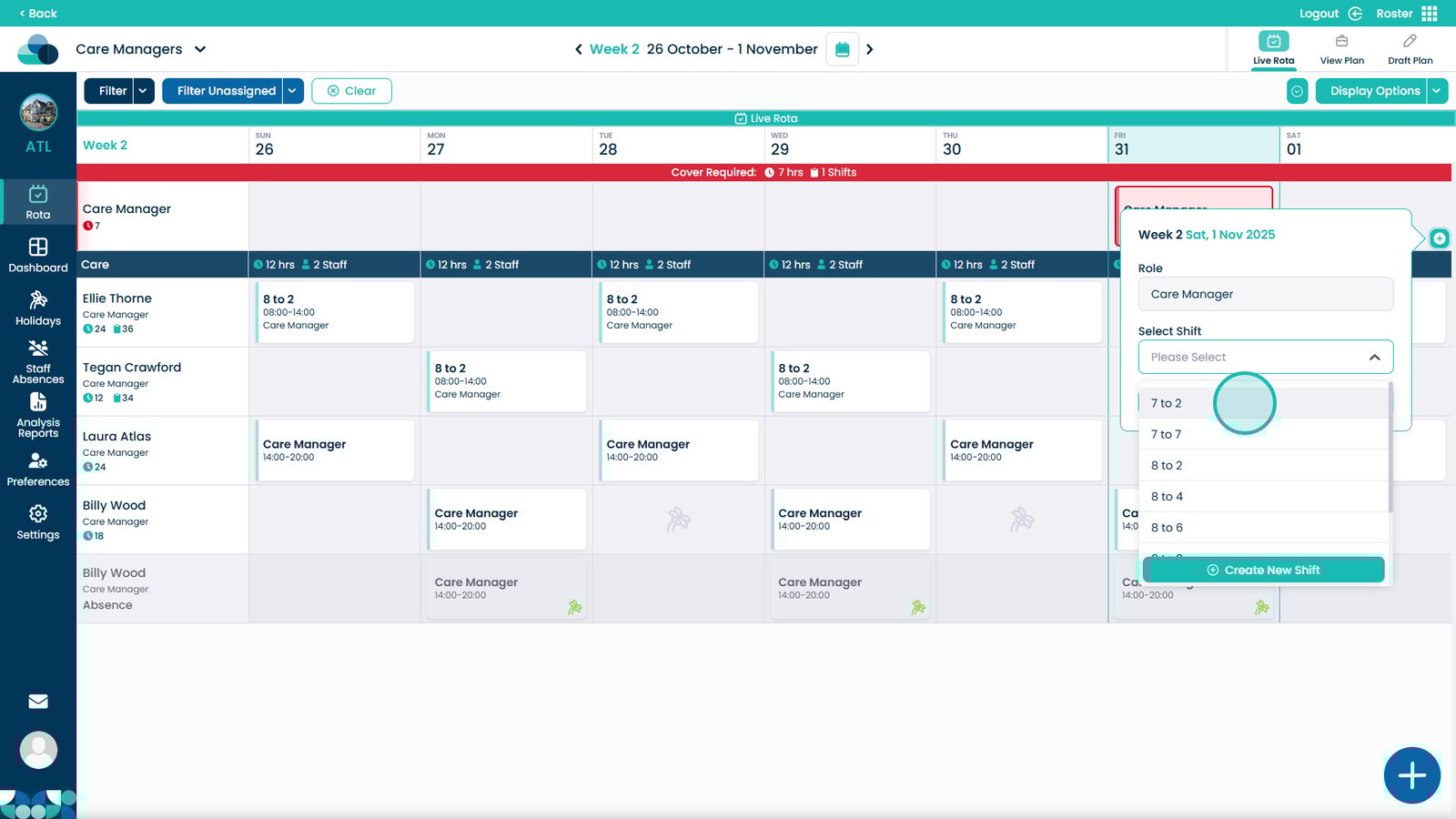 By following these steps, you can ensure that each shift is properly created, assigned, and visible within the rota, improving shift management, care team coordination, and staff coverage across your organisation.