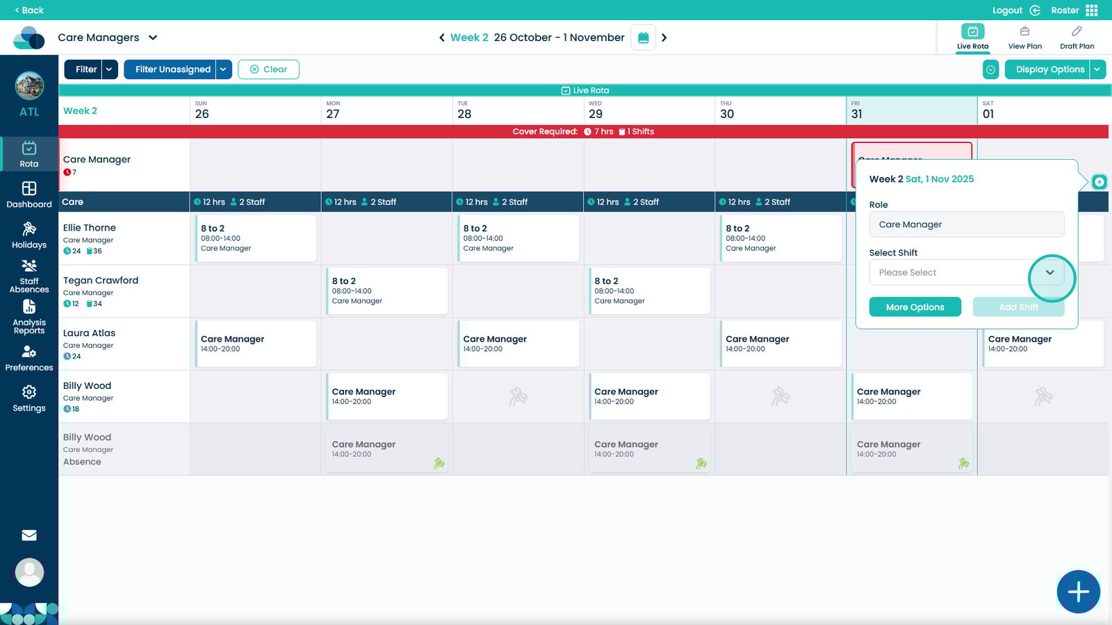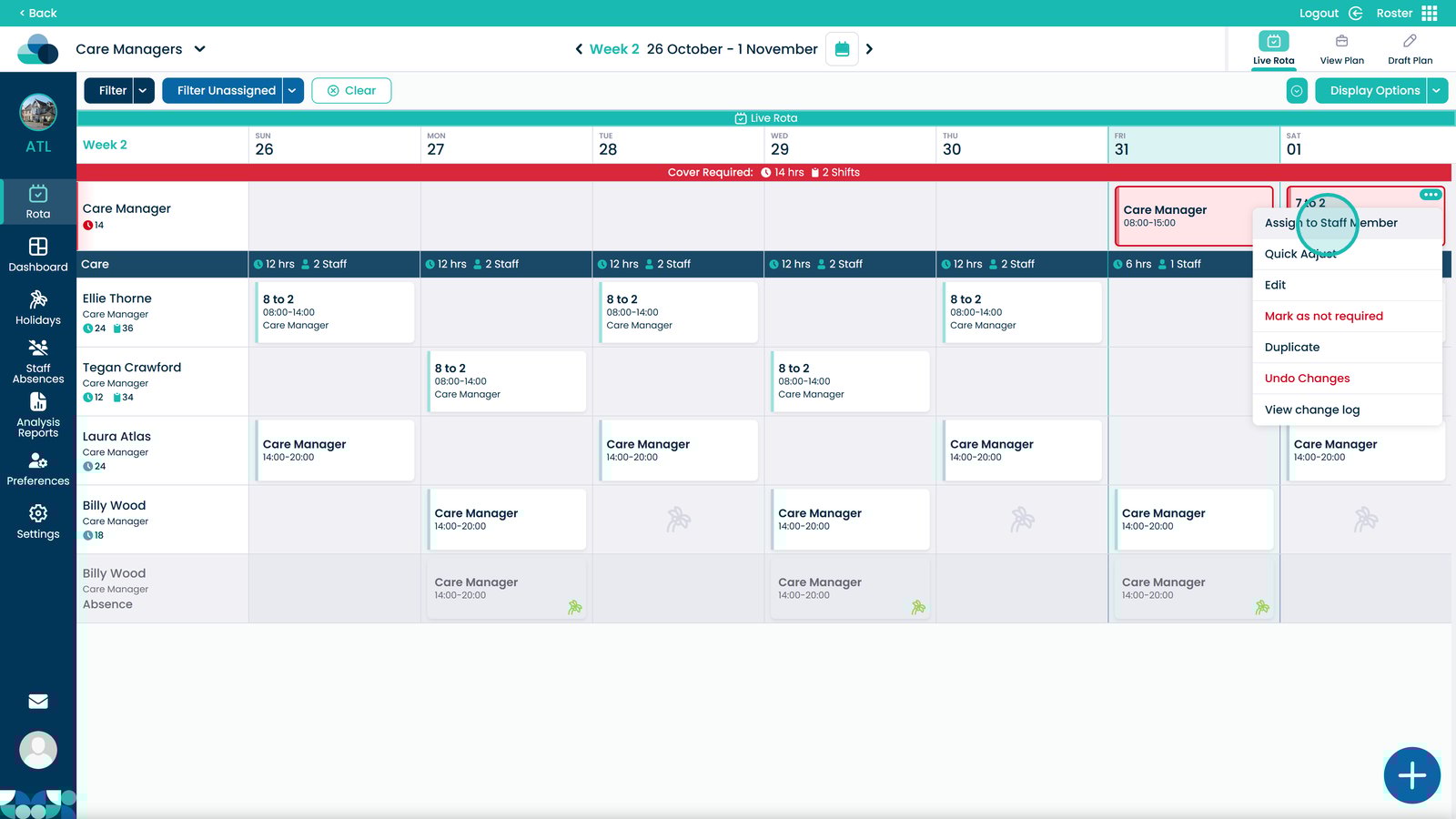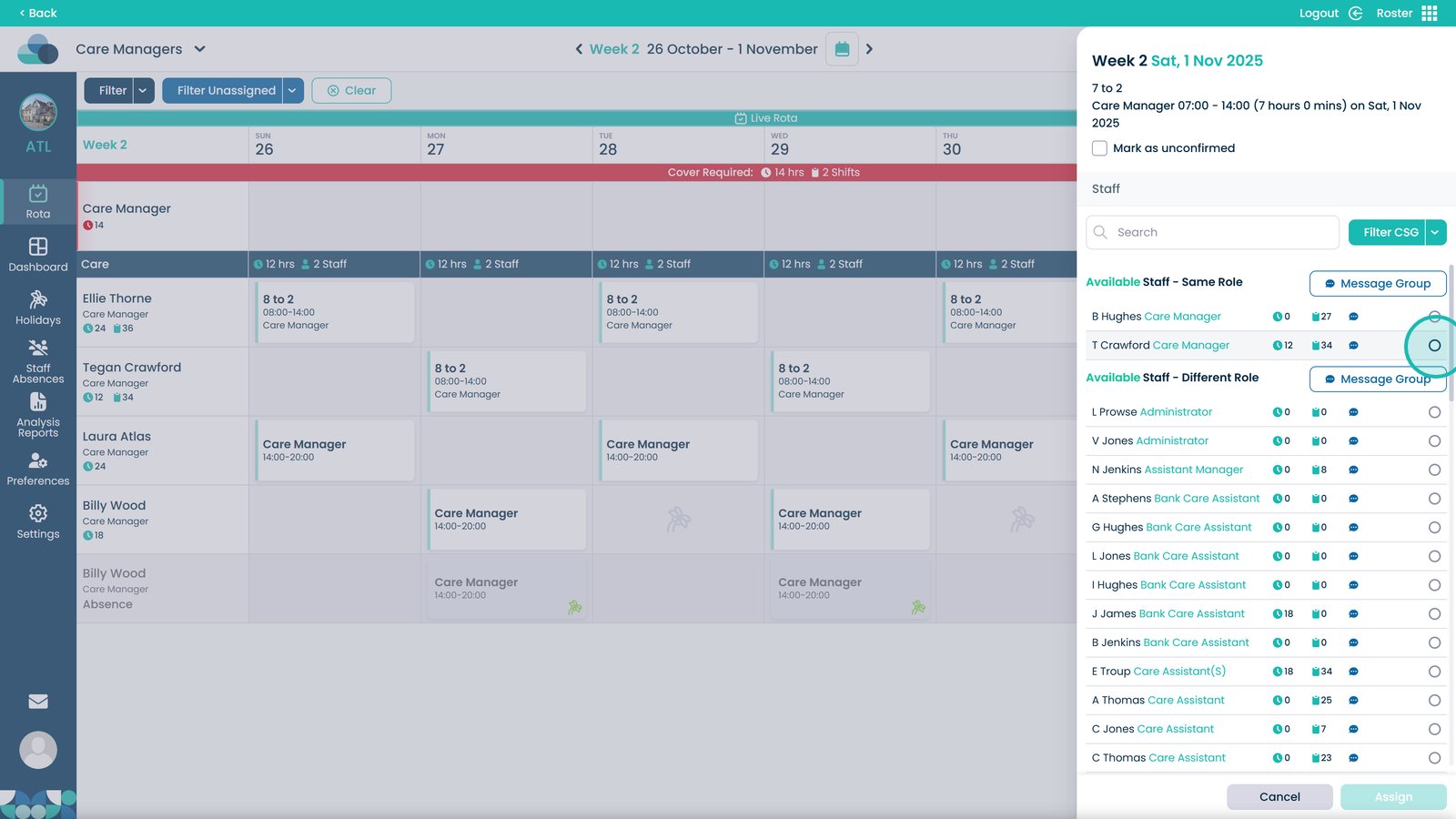 By following these steps, you can ensure that each shift is properly created, assigned, and visible within the rota, improving shift management, care team coordination, and staff coverage across your organisation.