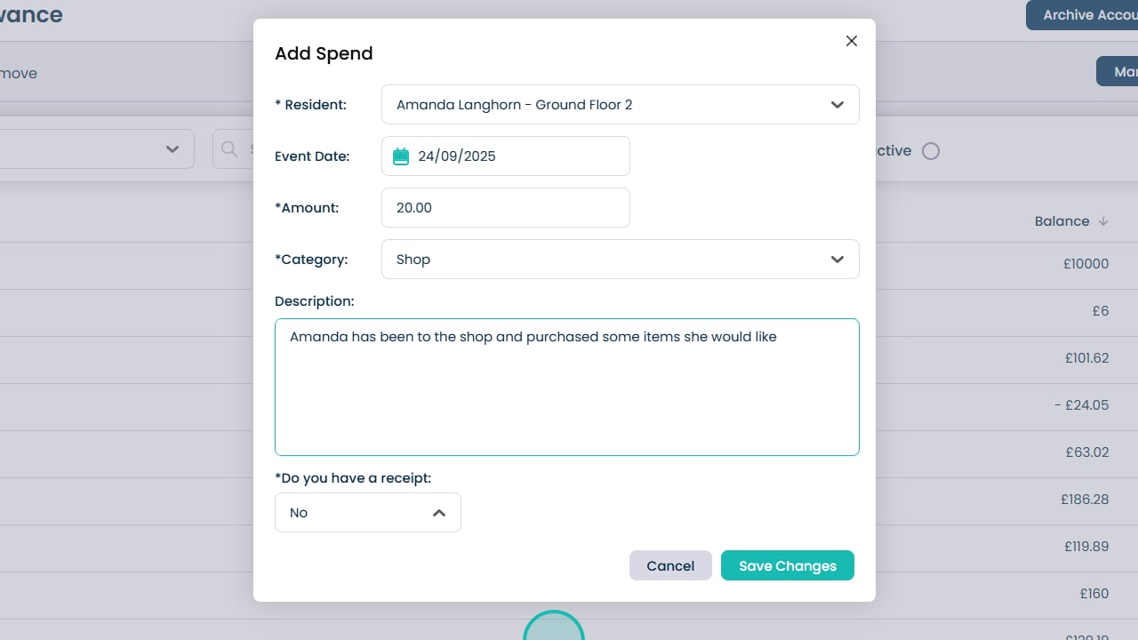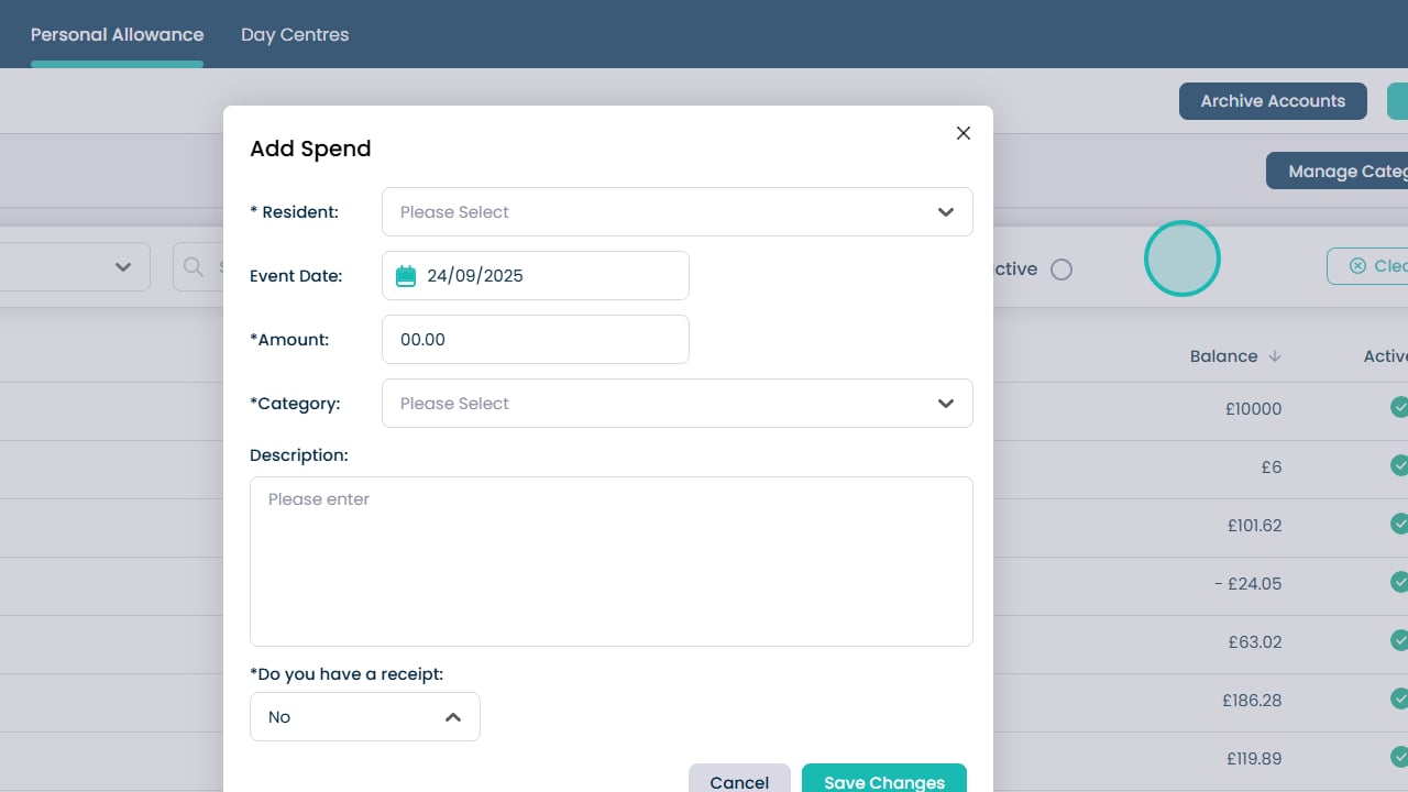 This guide will take you step by step through adding a new spend, from selecting the service user, entering the date and amount, choosing a category, and attaching receipts if needed. With clear screenshots and simple instructions, you and your team can confidently log expenses, maintain compliance, and give families peace of mind that personal funds are being managed responsibly.