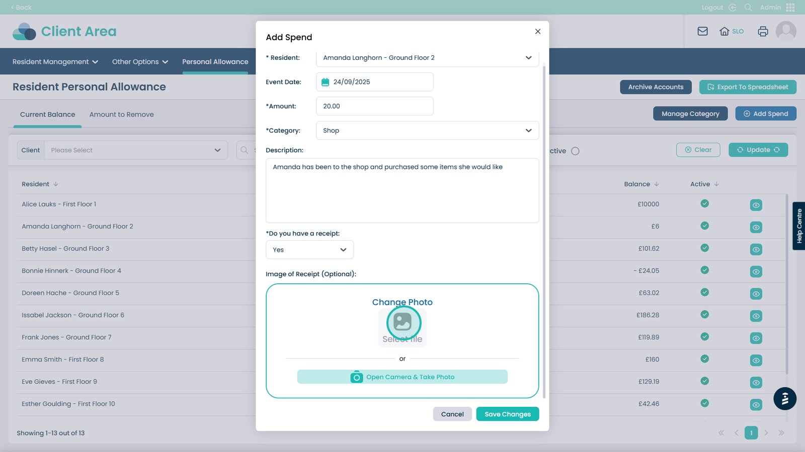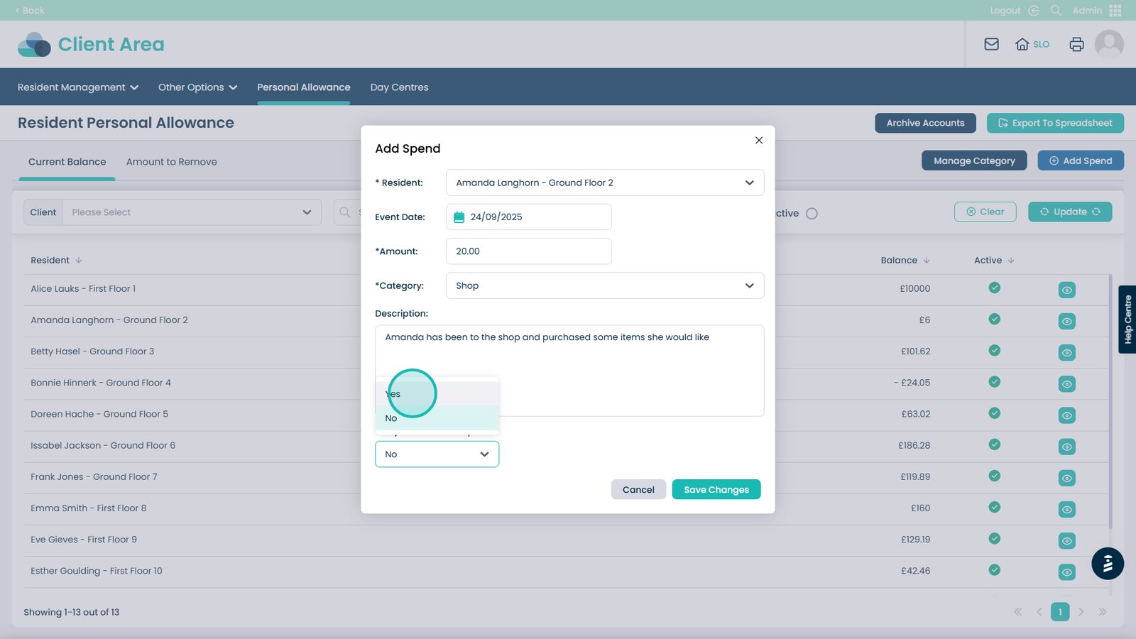Tracking a service user’s personal allowance is an important part of managing their finances transparently and accurately. Care Control’s Personal Allowance feature makes it easy to record every purchase or withdrawal, so you always have a clear audit trail and up-to-date balance.