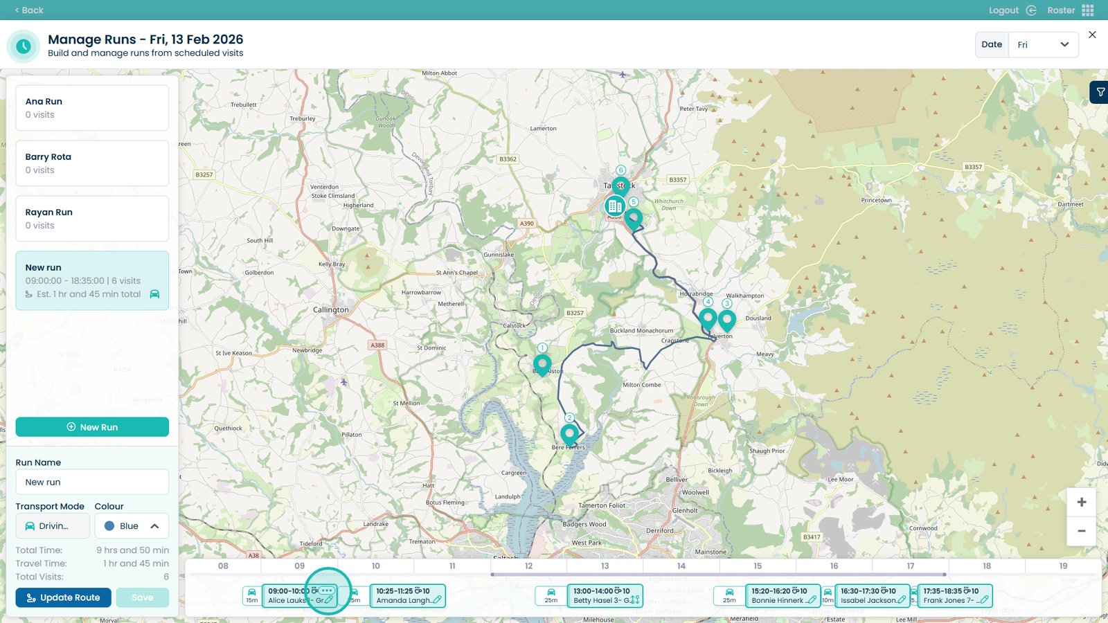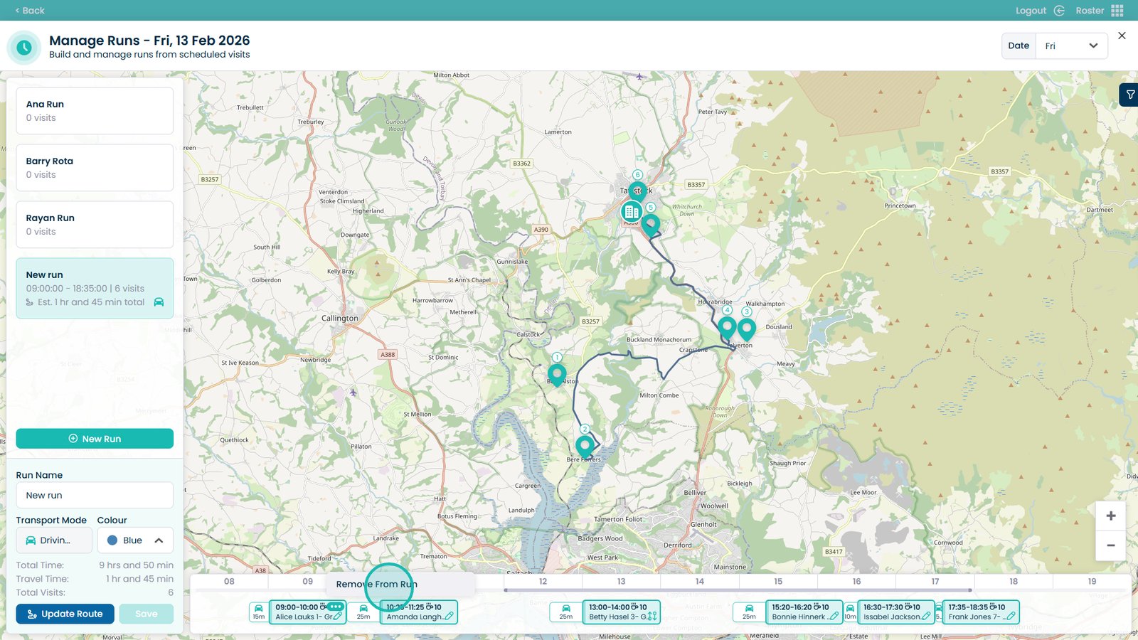 This is particularly useful if visits need to be reassigned, redistributed between staff members, or reorganised into new runs. By separating the visits, you can quickly adapt to availability changes, staffing adjustments, or route optimisations while keeping your rota accurate and up to date.