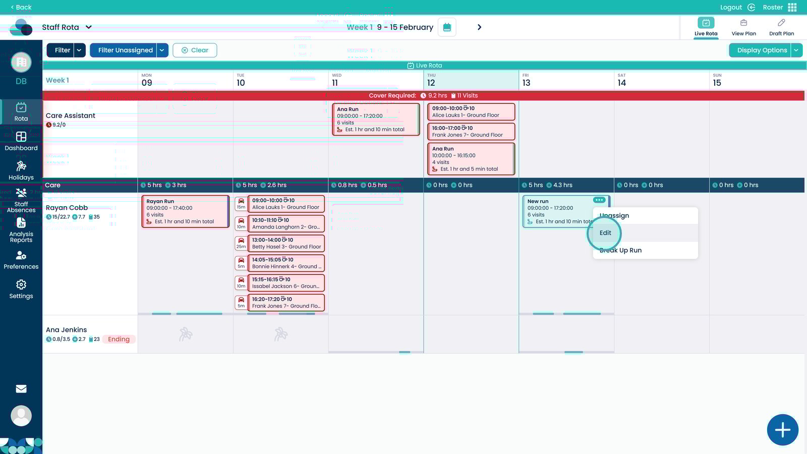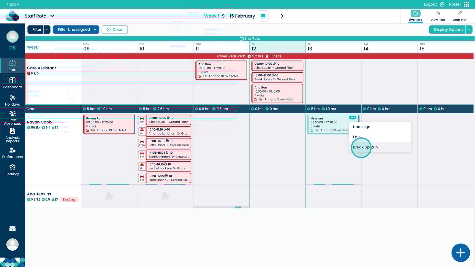 This guide explains how to break up a Run within the Cloud Roster system. Breaking up a run separates grouped visits back into individual entries, giving you greater flexibility when making changes to the schedule.