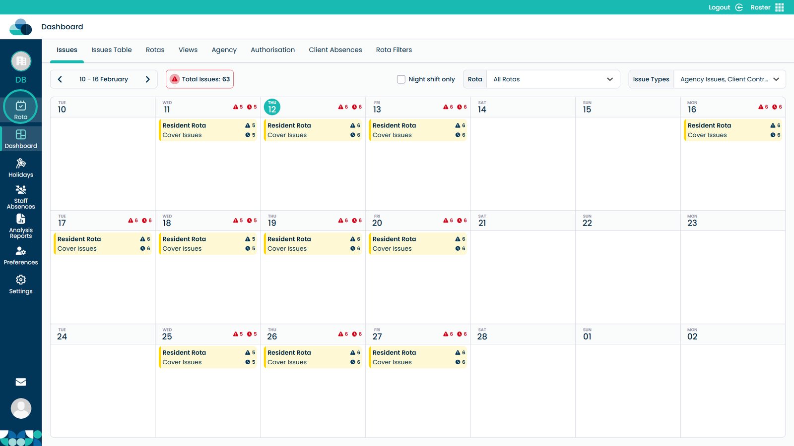 Open the Rota screen