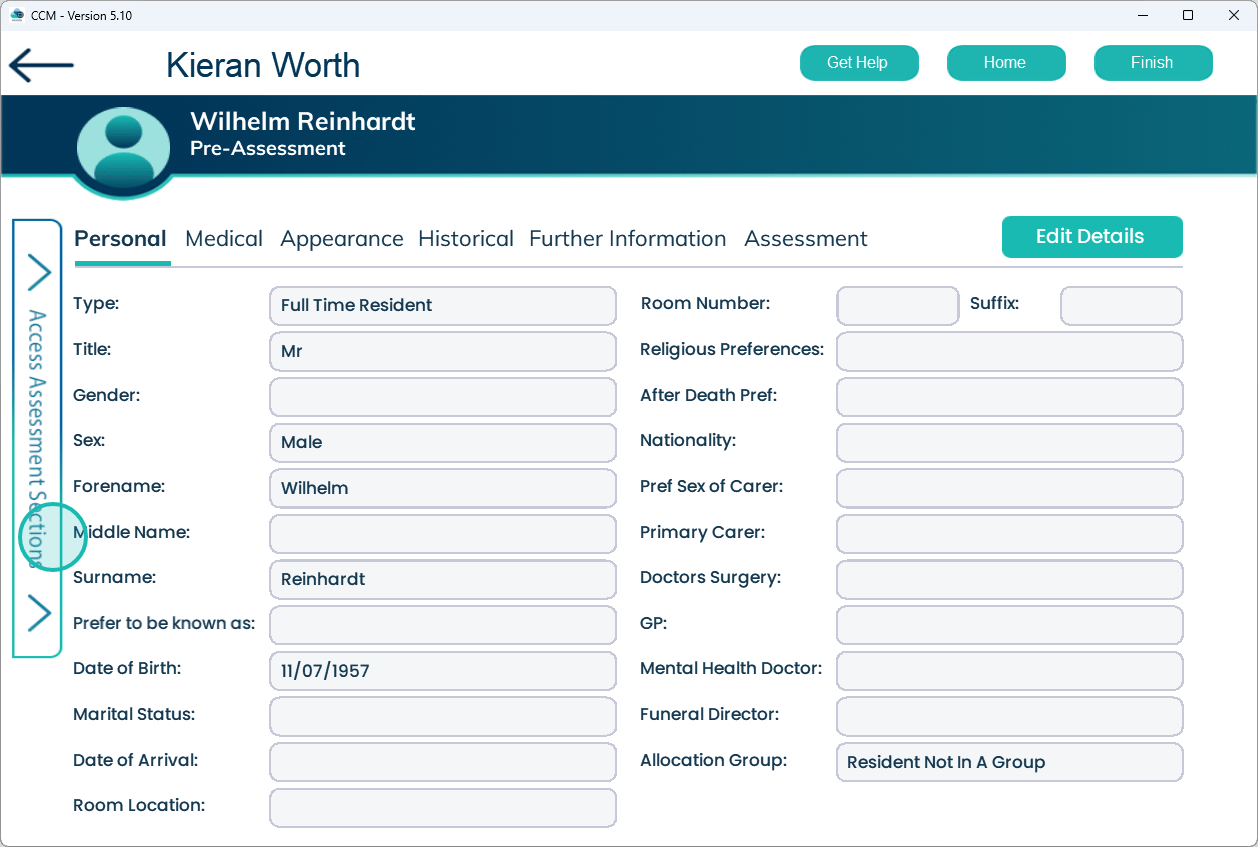 This guide explains how to access, update, and complete a pre-assessment within the Care Management system, including reviewing details, editing information, and progressing through assessment stages.