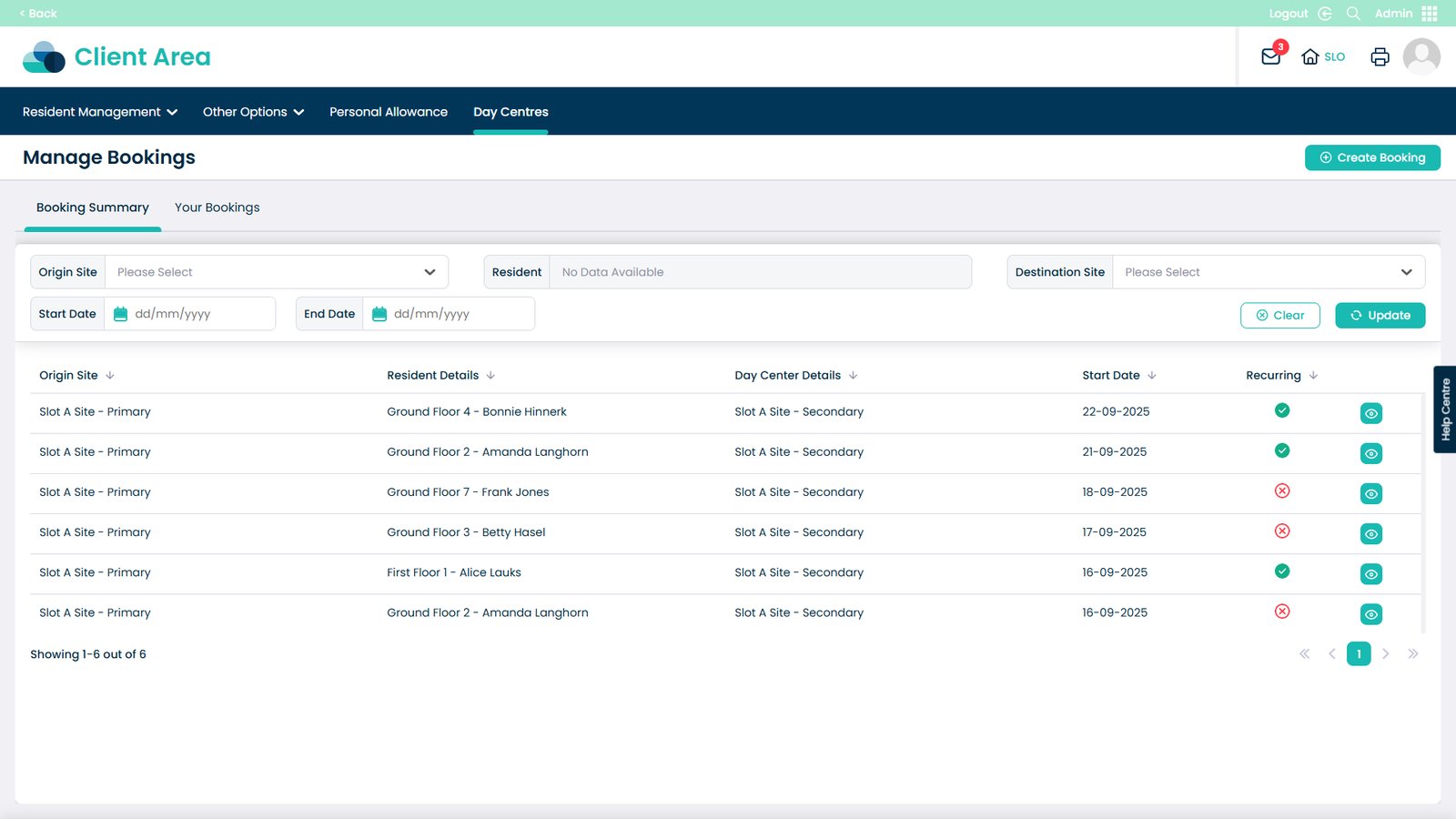 Booking day centre visits has never been easier. This feature allows you to quickly create and manage bookings for your residents, making sure everyone is where they need to be at the right time. You can select the starting and destination sites, choose the resident, set times and dates, and even make recurring bookings for regular visits. Adding notes and assigning CSGs helps keep staff informed and ensures residents receive the right care and support.