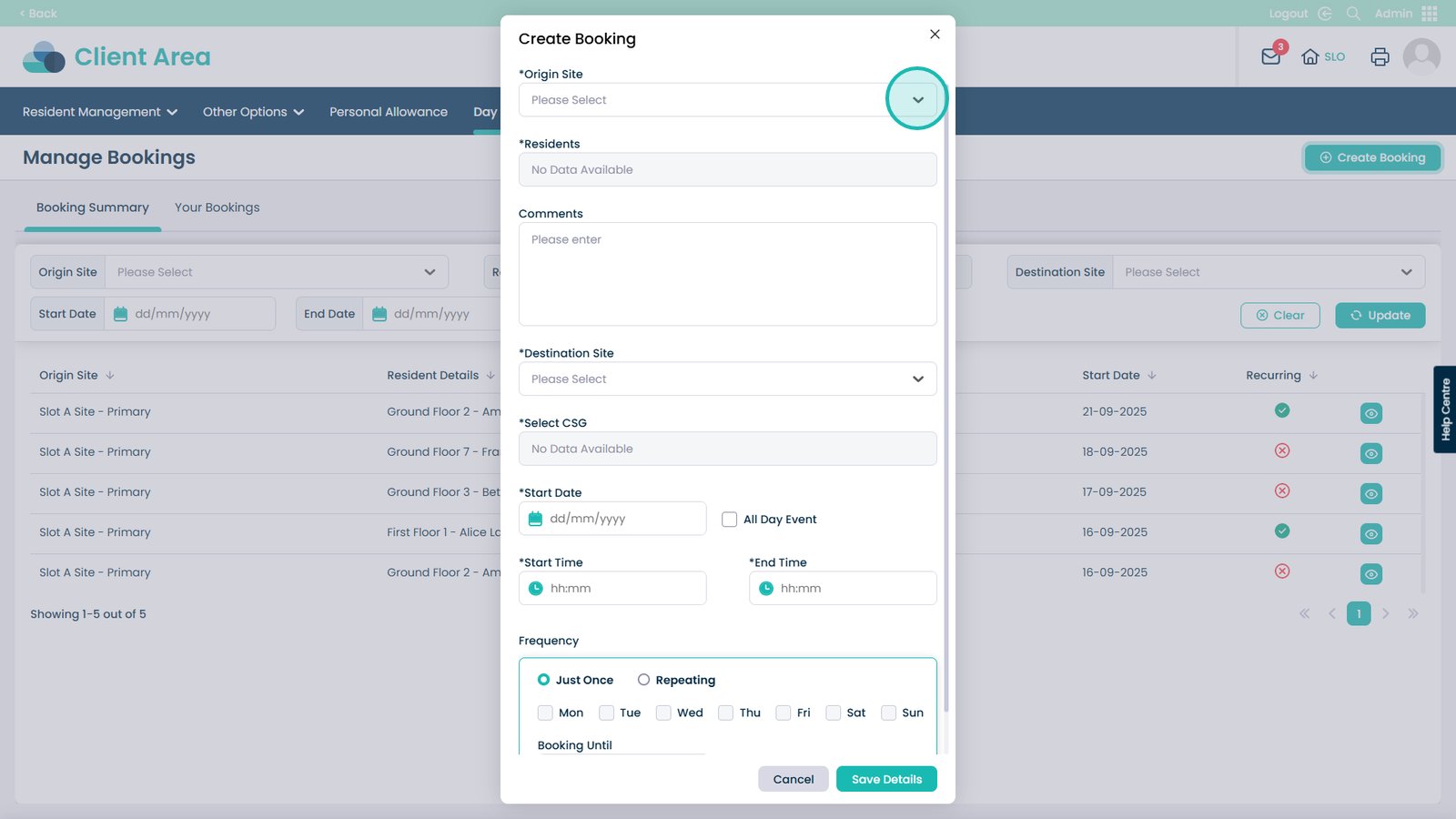 Booking day centre visits has never been easier. This feature allows you to quickly create and manage bookings for your residents, making sure everyone is where they need to be at the right time. You can select the starting and destination sites, choose the resident, set times and dates, and even make recurring bookings for regular visits. Adding notes and assigning CSGs helps keep staff informed and ensures residents receive the right care and support.