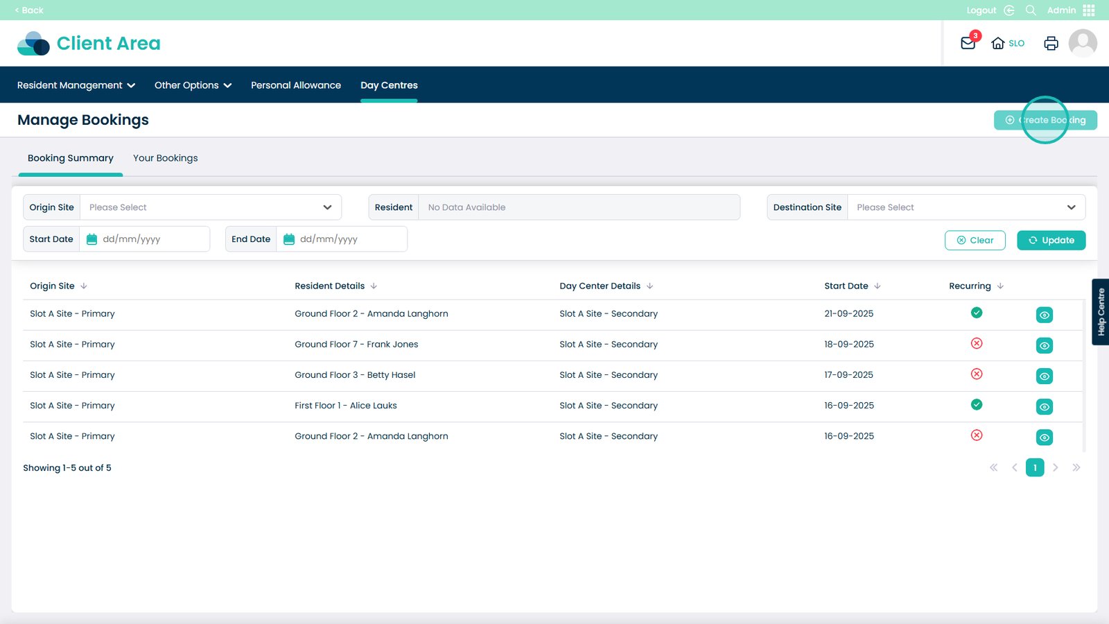 Booking day centre visits has never been easier. This feature allows you to quickly create and manage bookings for your residents, making sure everyone is where they need to be at the right time. You can select the starting and destination sites, choose the resident, set times and dates, and even make recurring bookings for regular visits. Adding notes and assigning CSGs helps keep staff informed and ensures residents receive the right care and support.