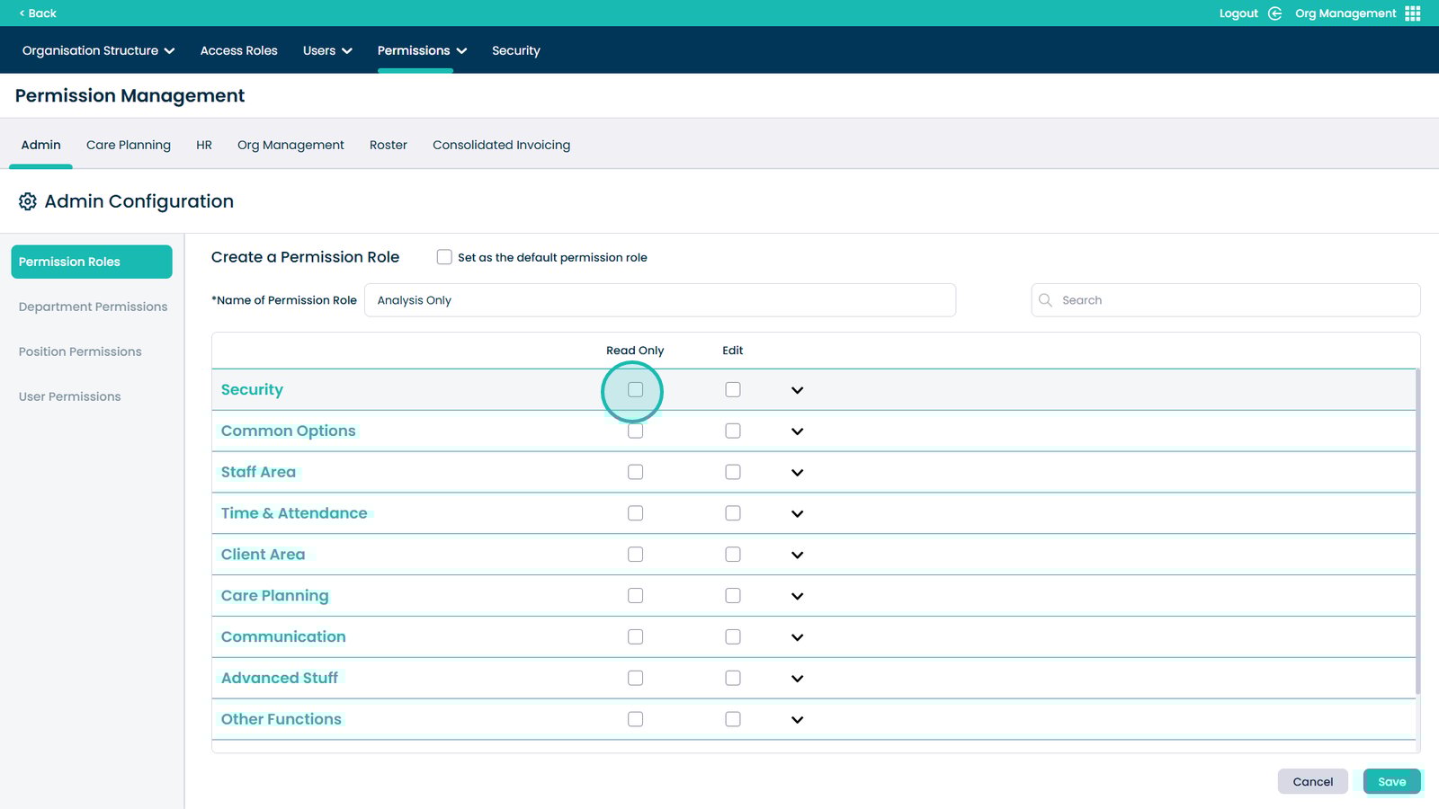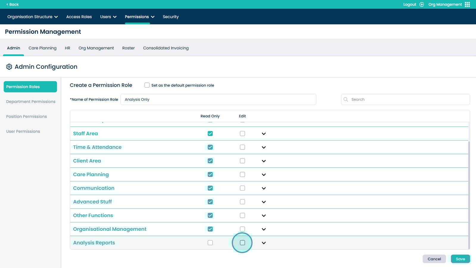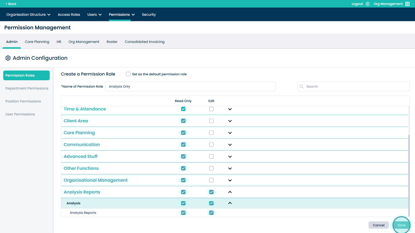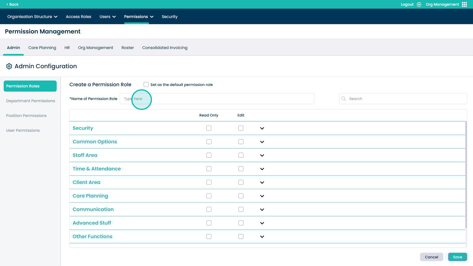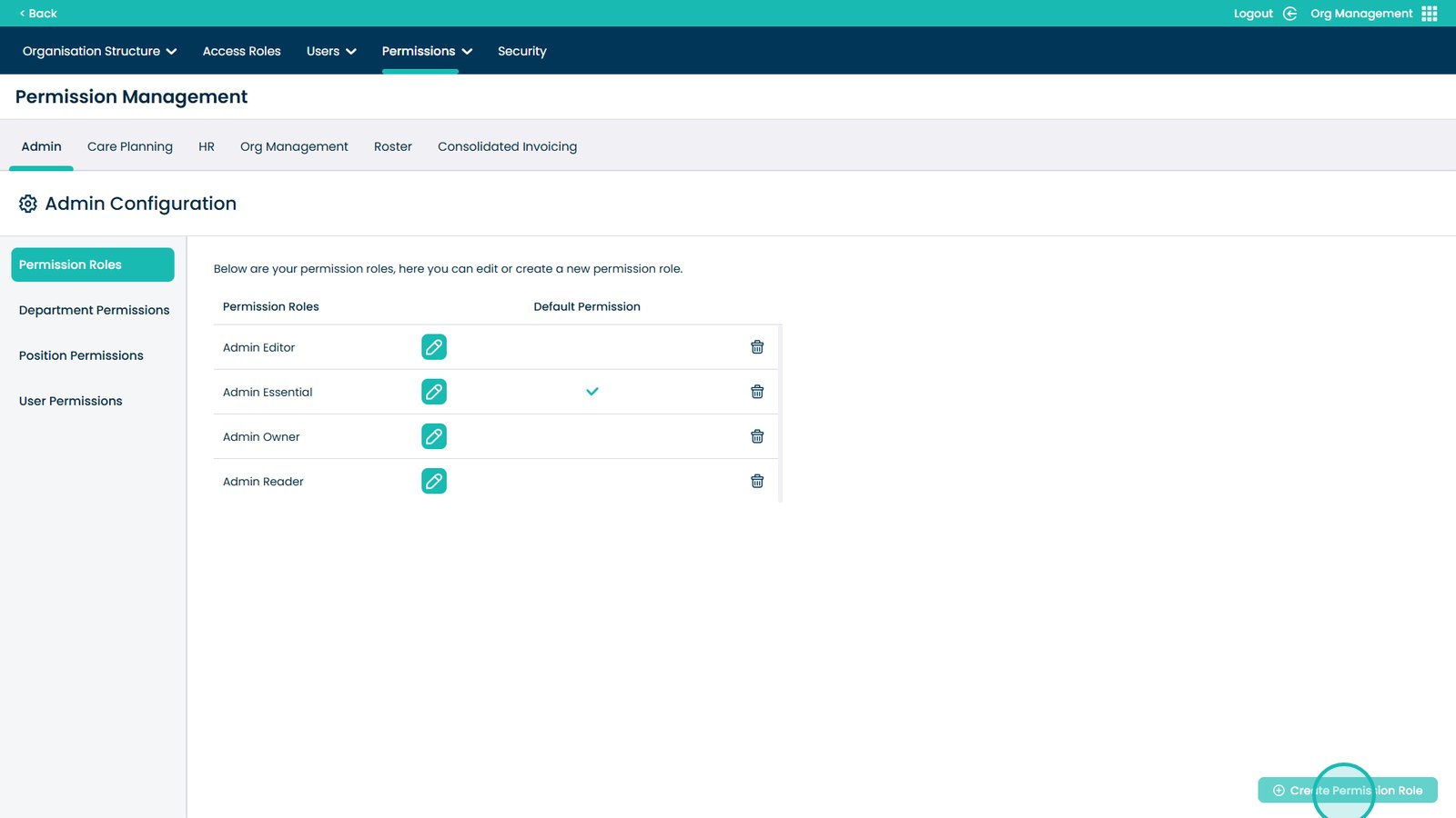 Setting up Permission Roles in the Org Management App allows you to control who can access and edit different areas of your Care Control system.