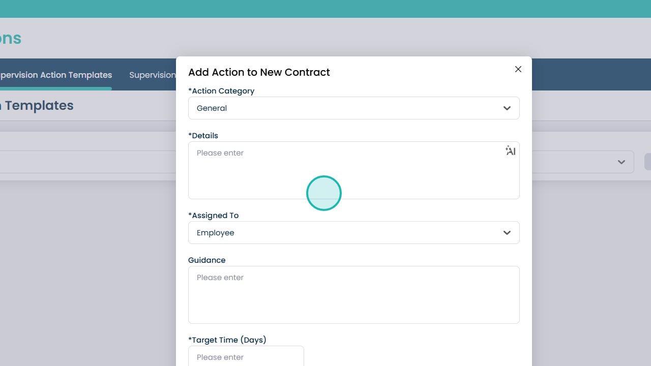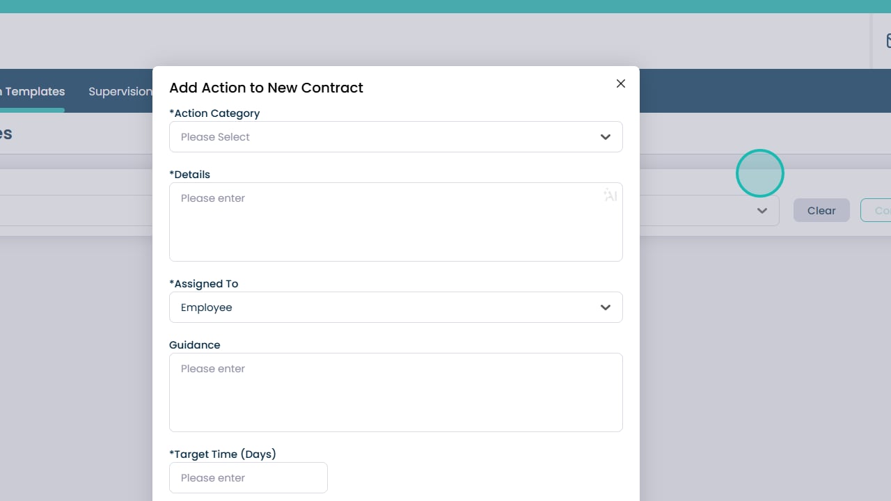 The Supervision Action Templates feature in the Care Control HR App lets you easily create and manage custom templates for structuring staff and supervisor actions. These templates provide a consistent framework for capturing key information during supervision meetings and help ensure that all assigned actions are clear, measurable, and tracked.