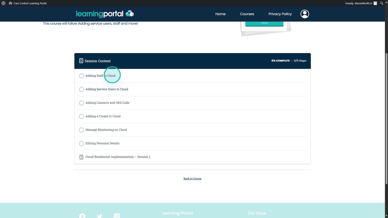 Select the course you wish to start