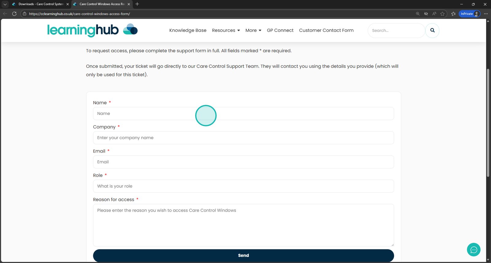 You’ll be guided through visiting the Care Control downloads page, submitting a request for the Windows version, and opening the application once your download link has been sent to you. The steps also explain what to expect after submitting the form, so you know where the download link will arrive and what to do next.