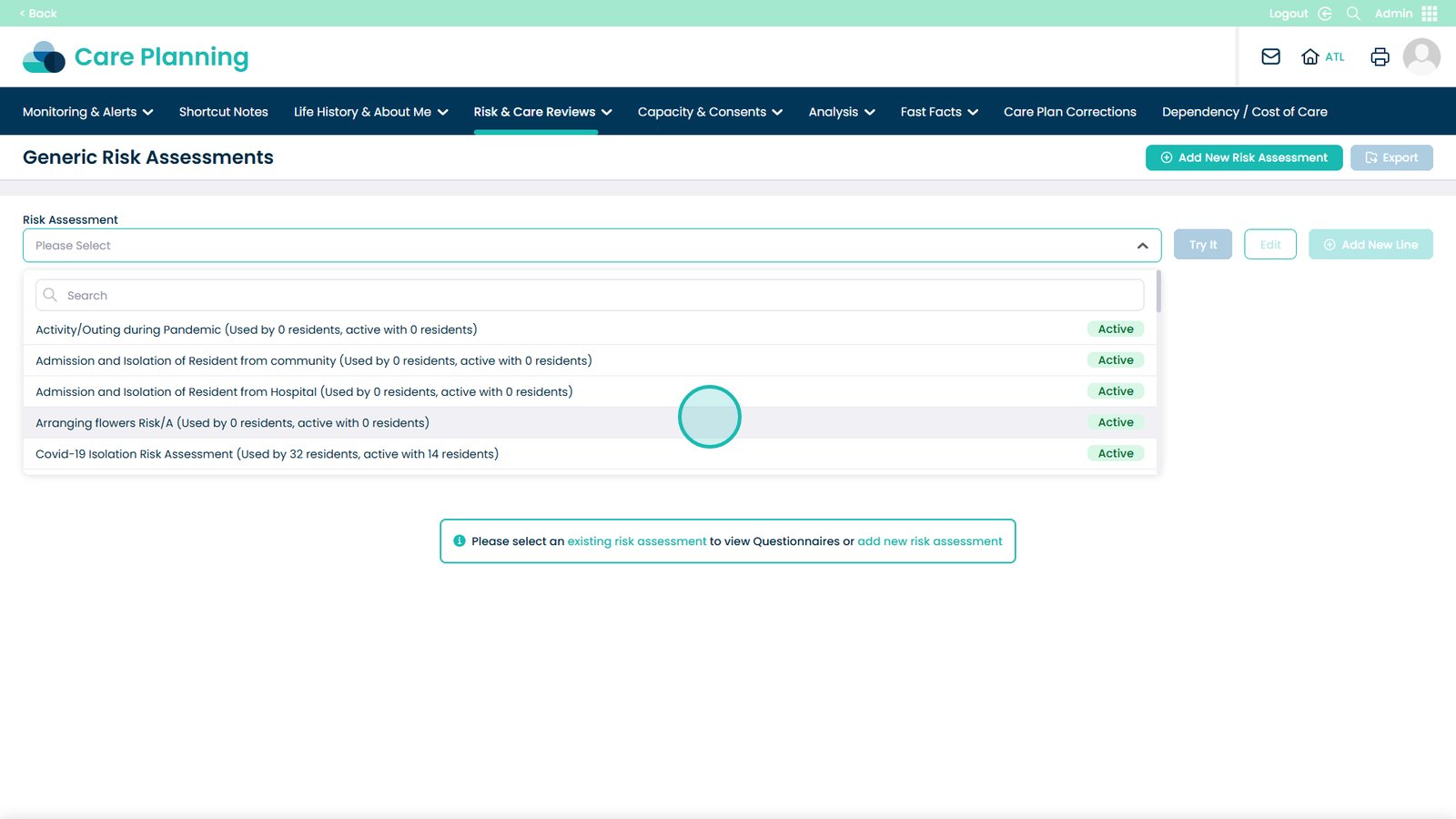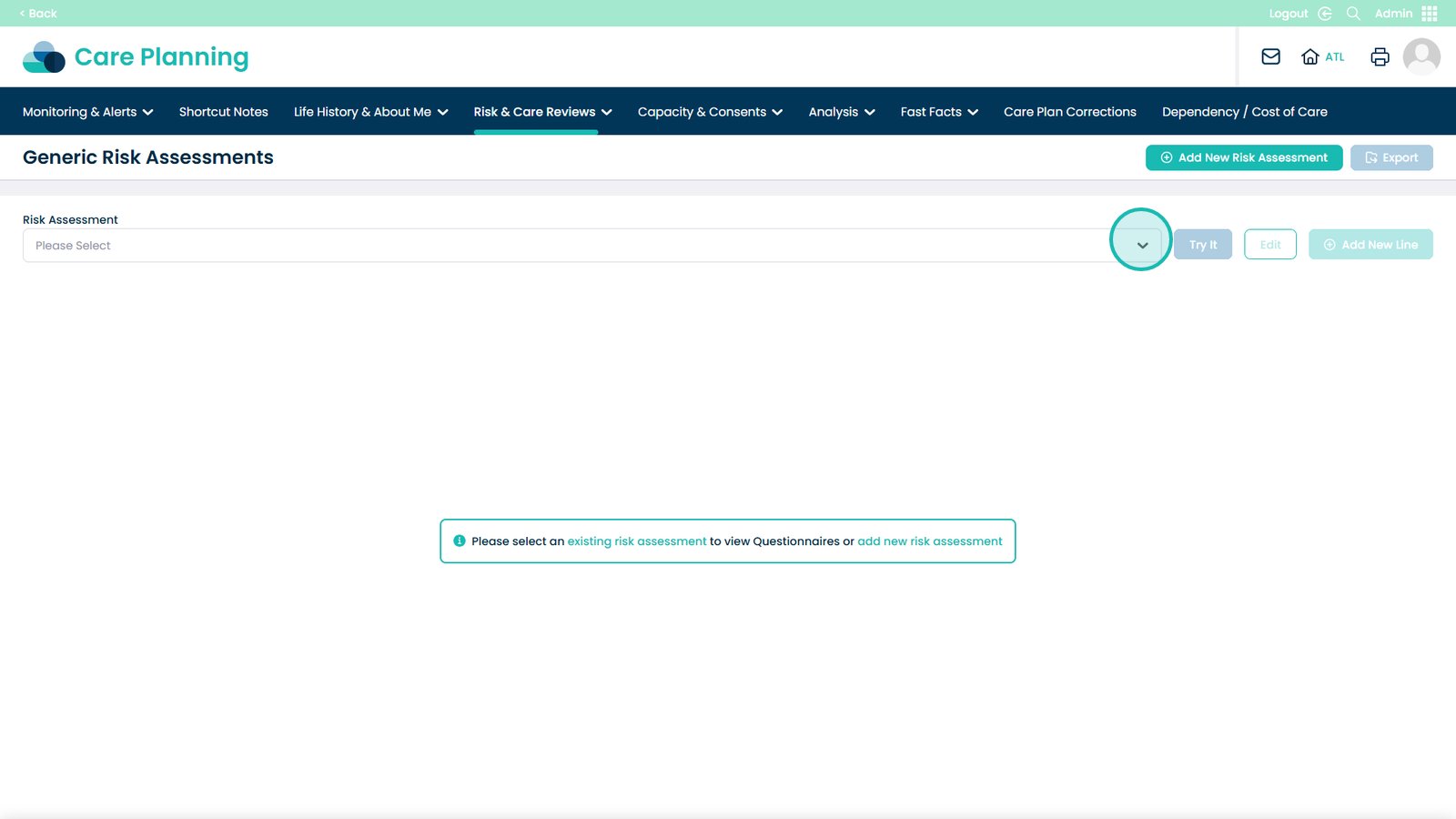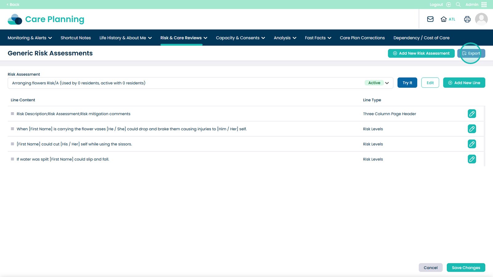 This guide explains how to export a Generic Risk Assessment template from the Care Planning module in the Admin App. Exporting templates allows you to easily share, back up, or review your Risk Assessment layouts outside the system, ensuring compliance and consistency across all your care sites.