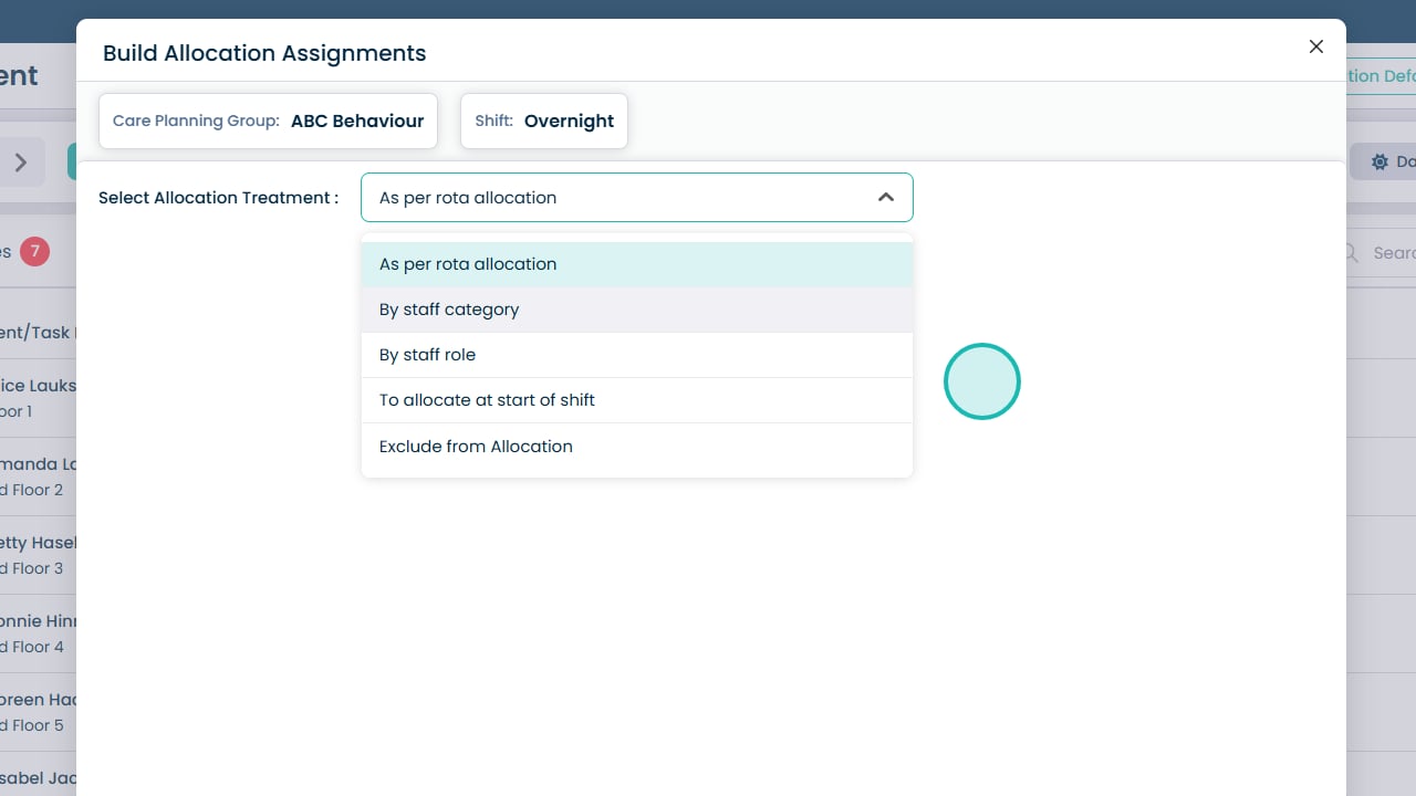 Choose from “As per rota allocation”, “To allocate at start of shift”, or “Exclude from allocation”