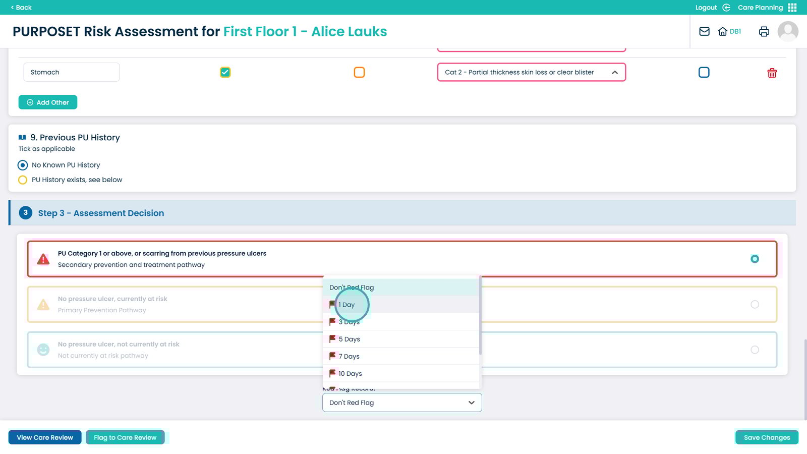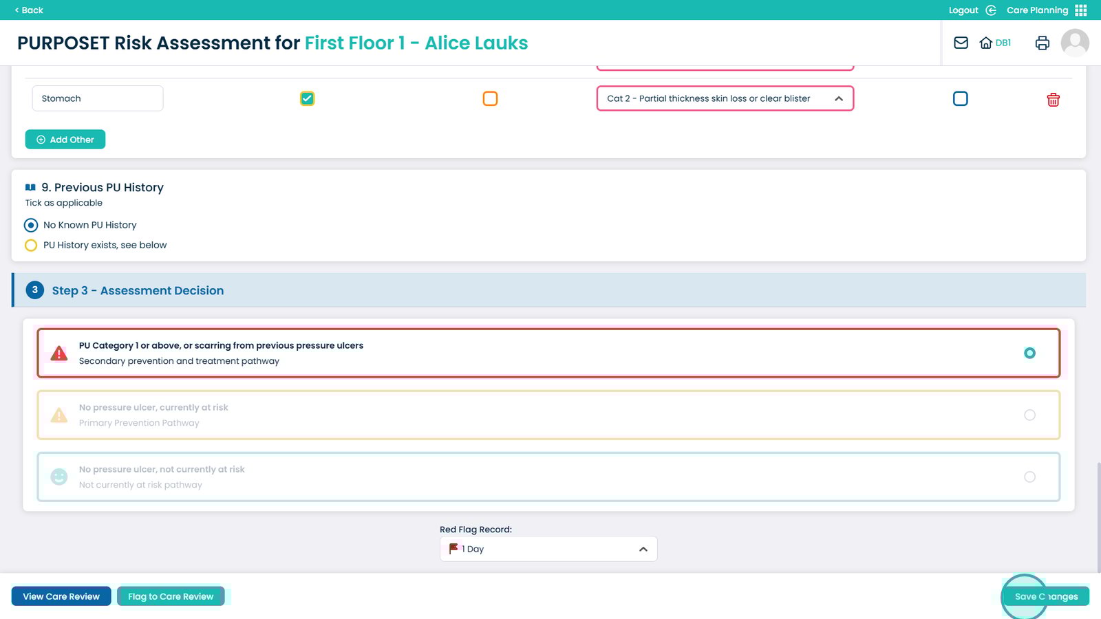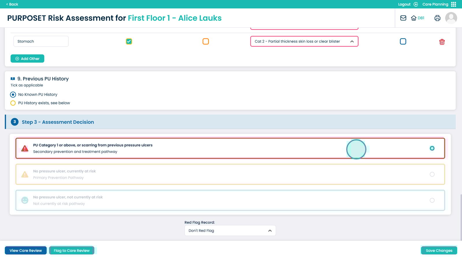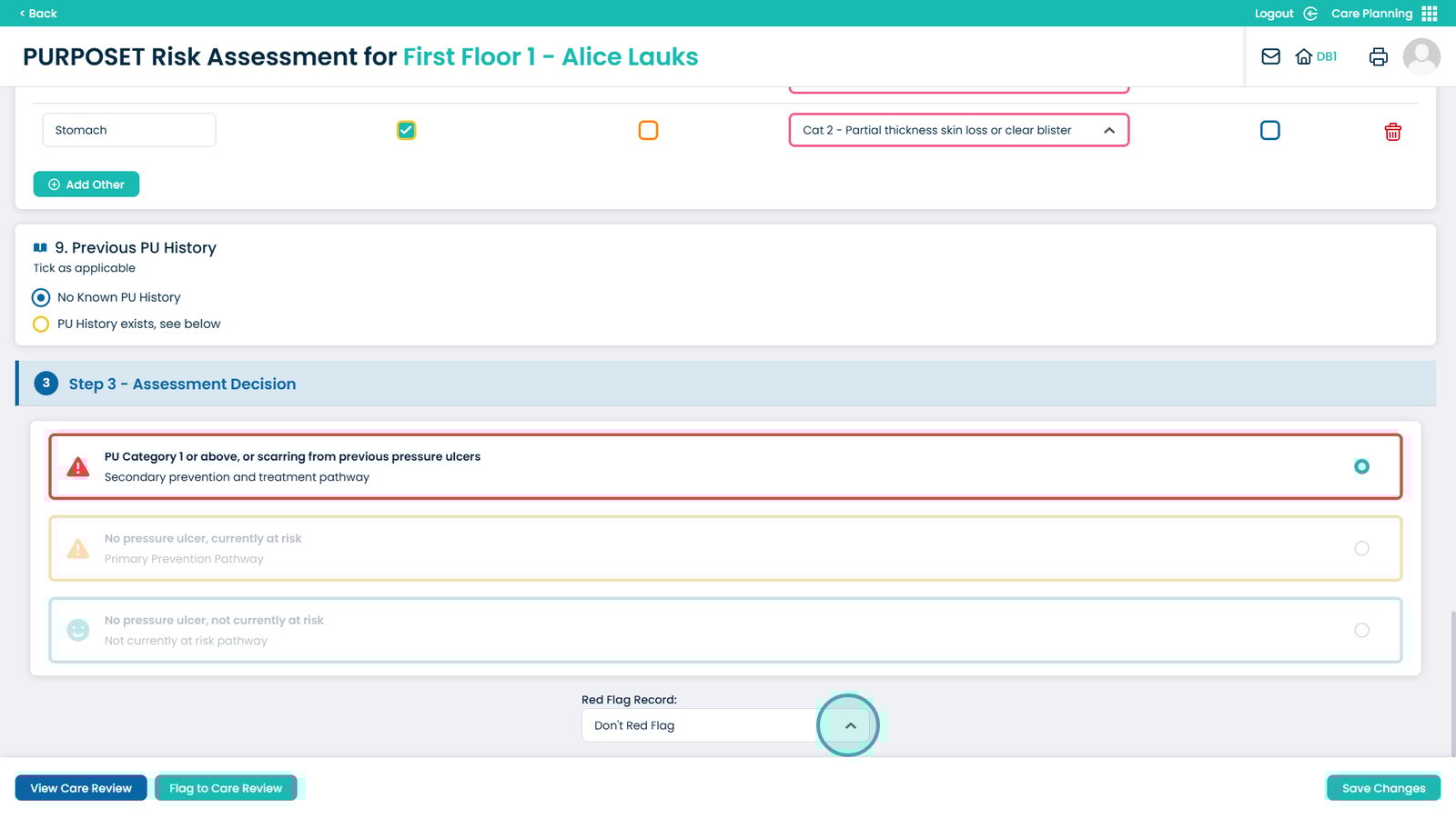 Select to Red Flag the record if necessary, this will flag it on the care plan