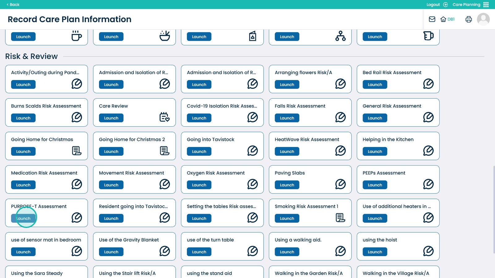 Scroll down until you see Risk & Review, then click Launch on Purpose-T Assessment