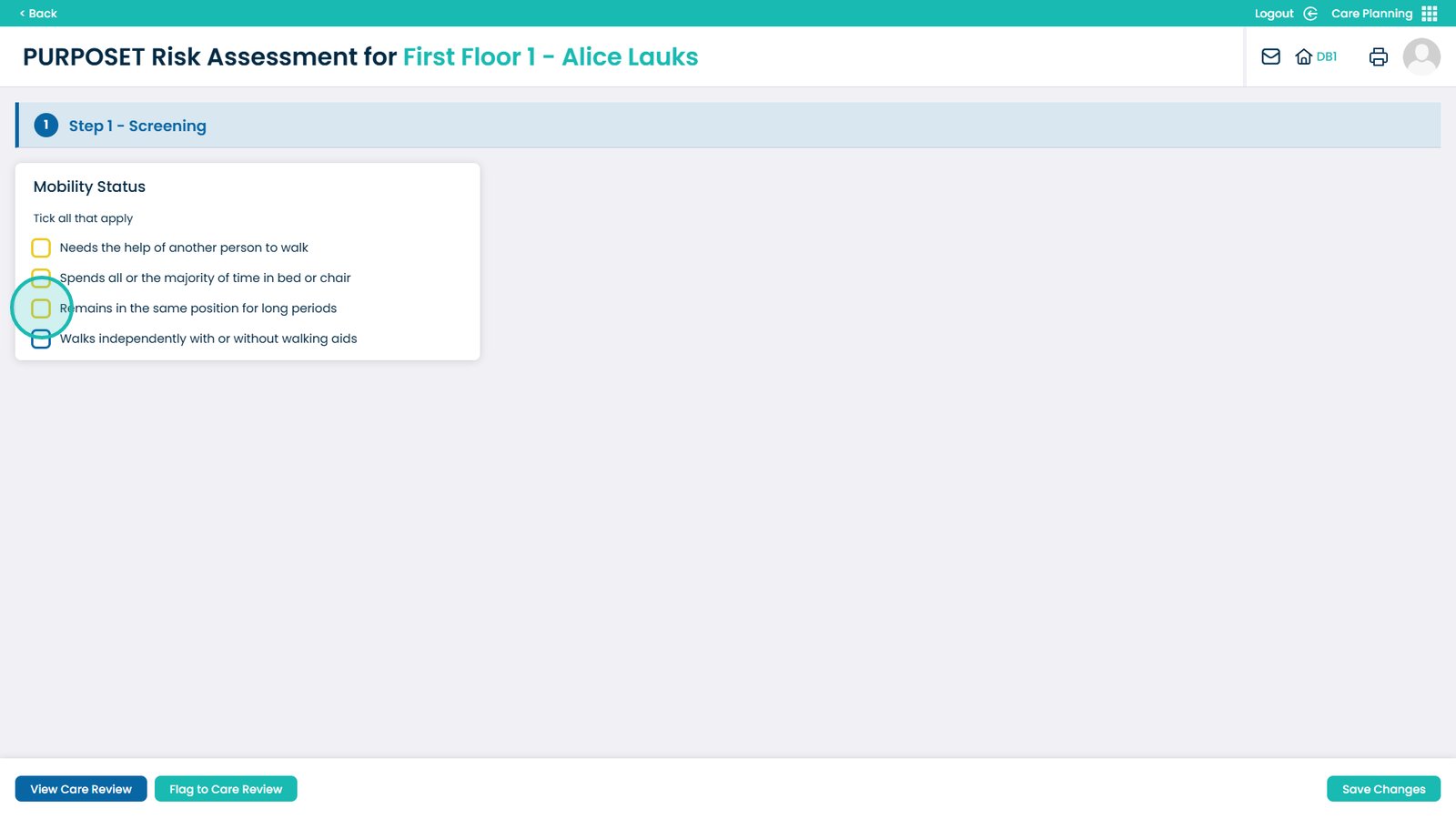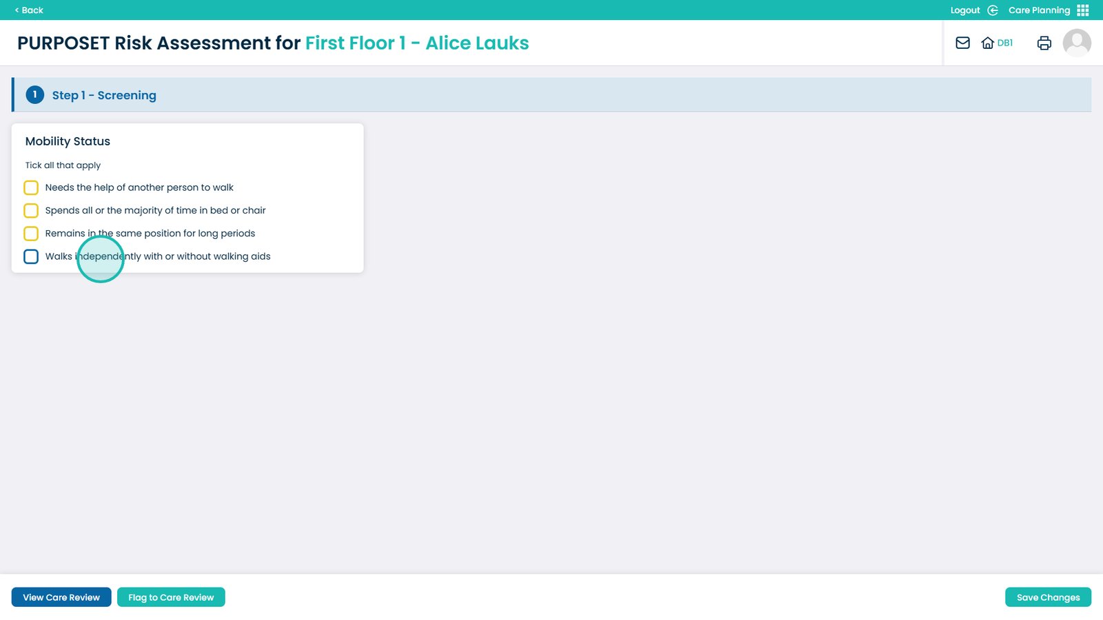This walkthrough shows how to record a PURPOSE-T pressure-ulcer risk assessment in the Care Planning app, step by step. You’ll see how to open the form, capture mobility/skin status and clinical judgement, and save the result so it feeds into the person’s care plan.