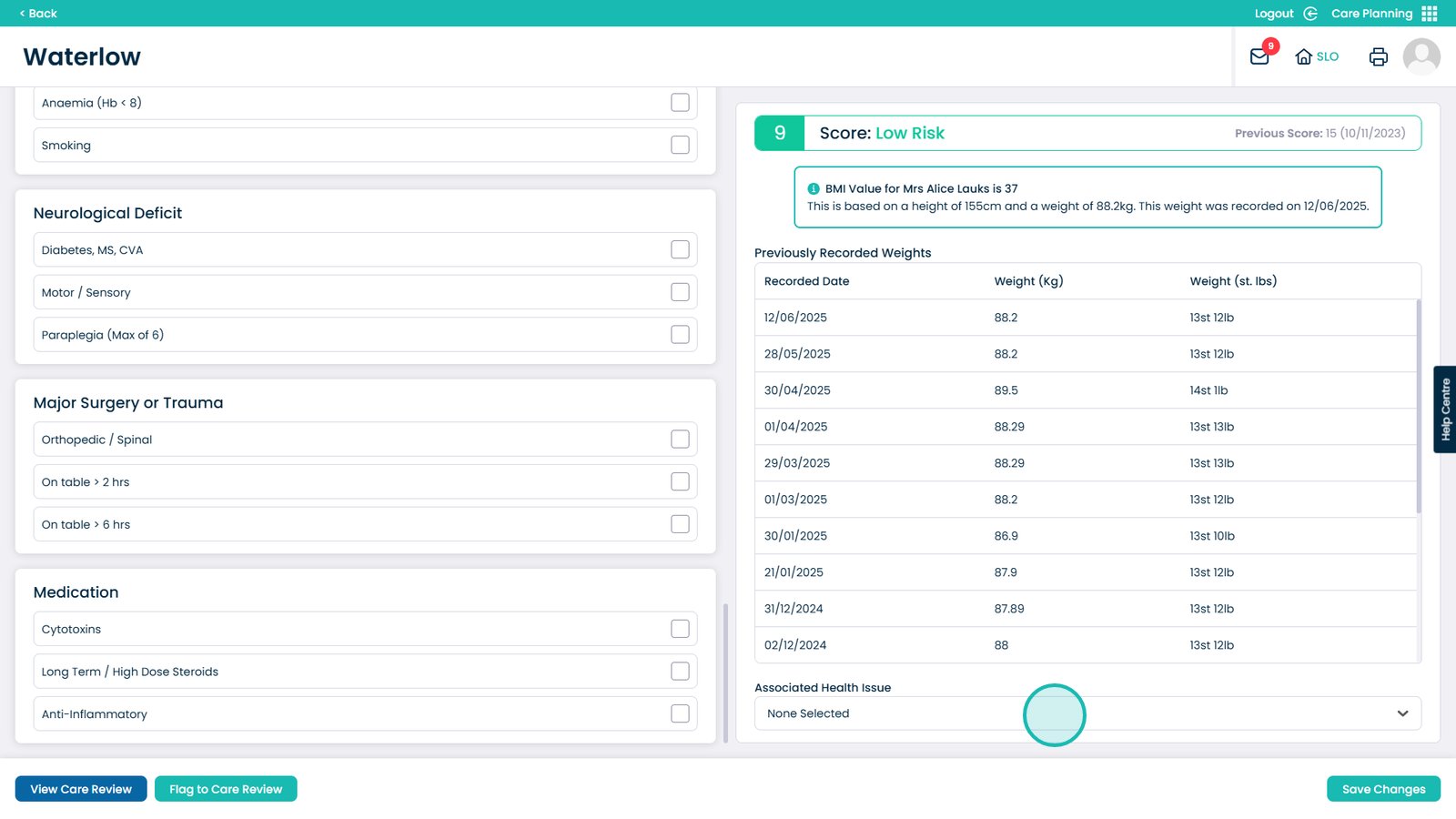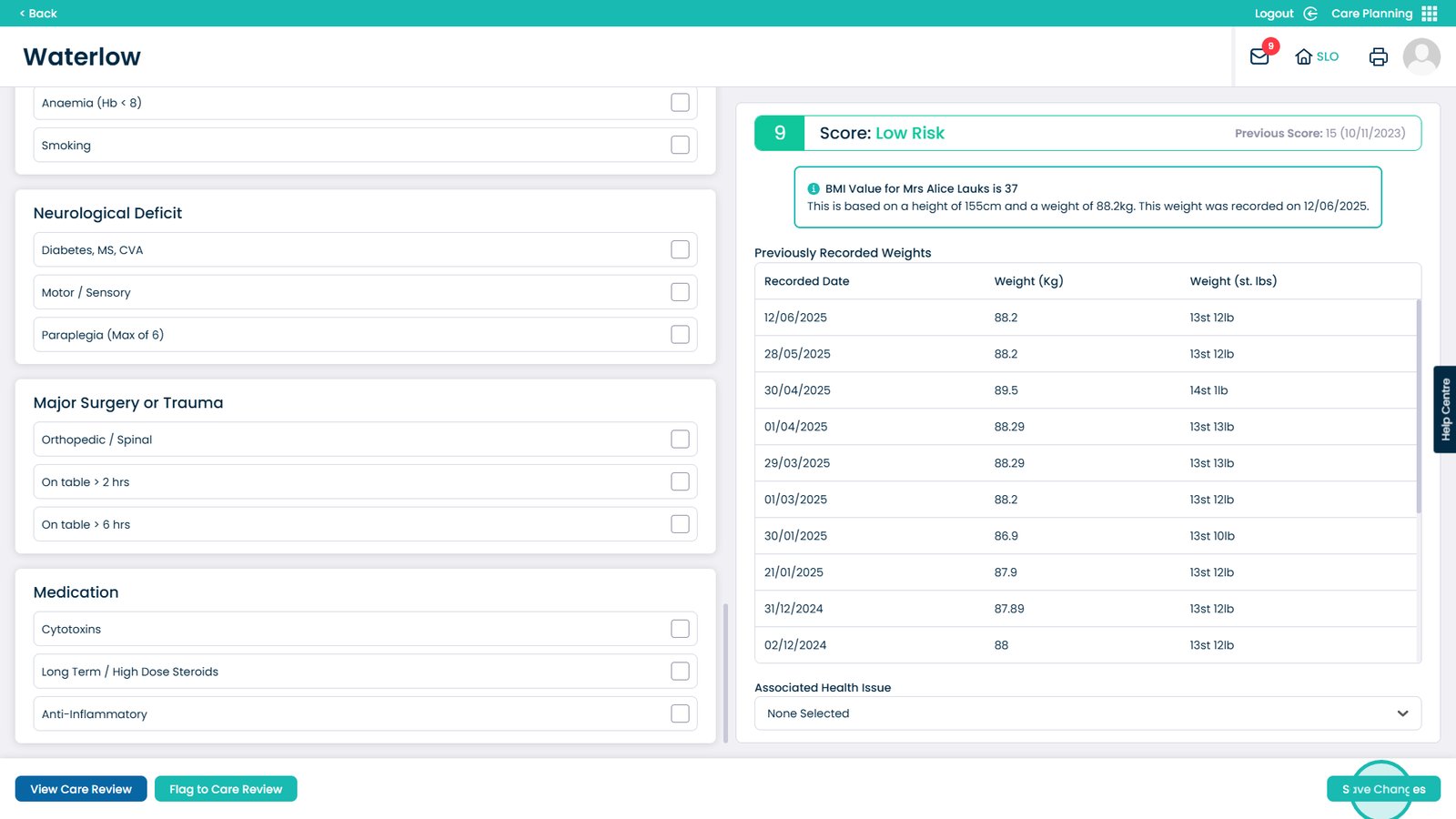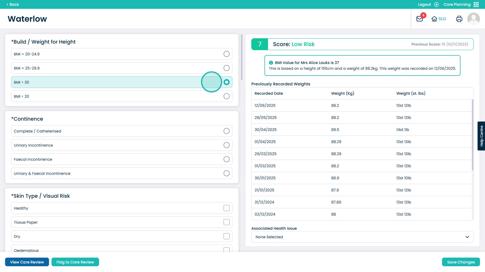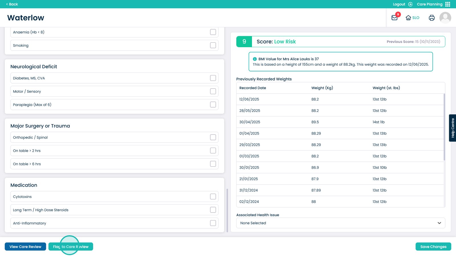 You can also Flag the Waterlow to the Care Review, ensuring that if something is wrong it is checked up on