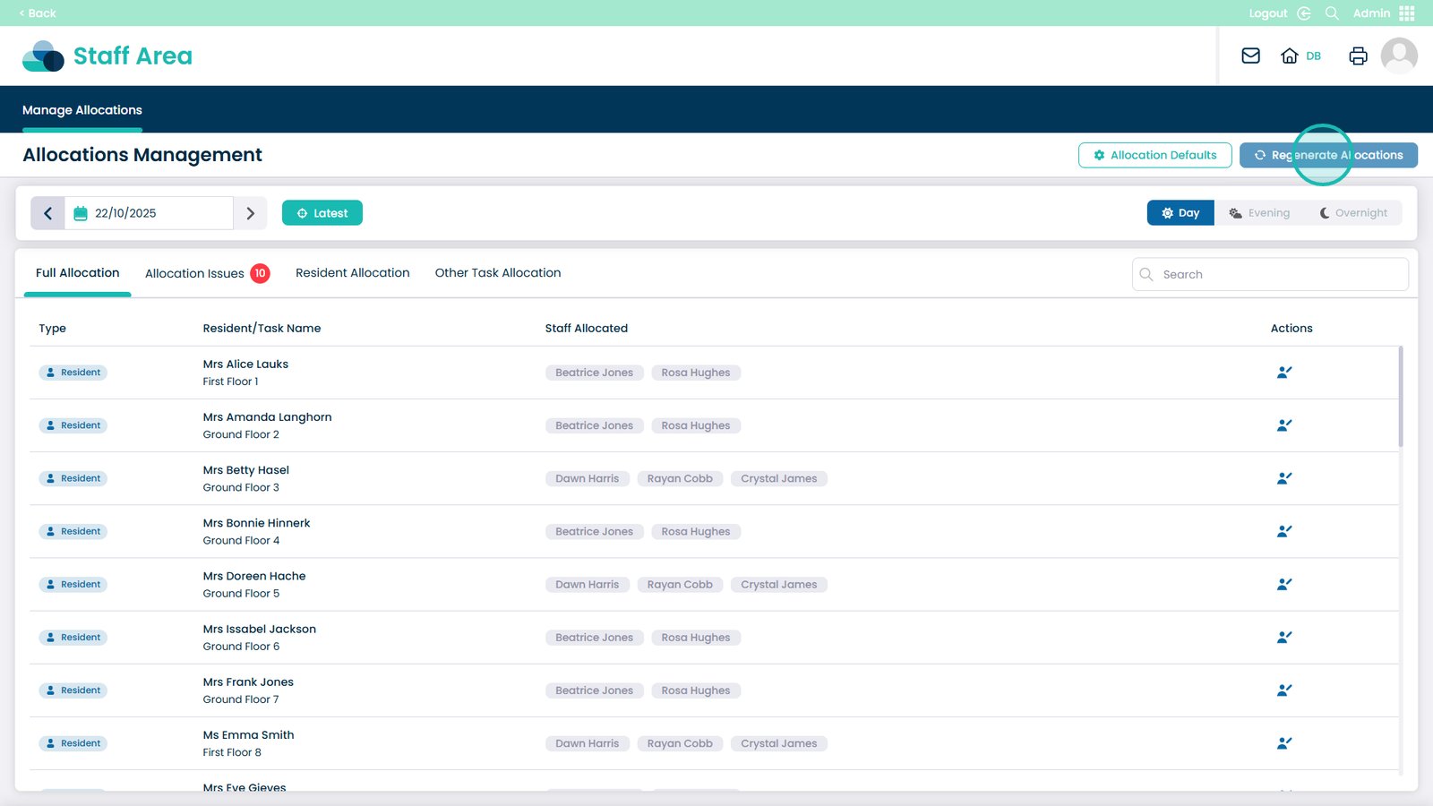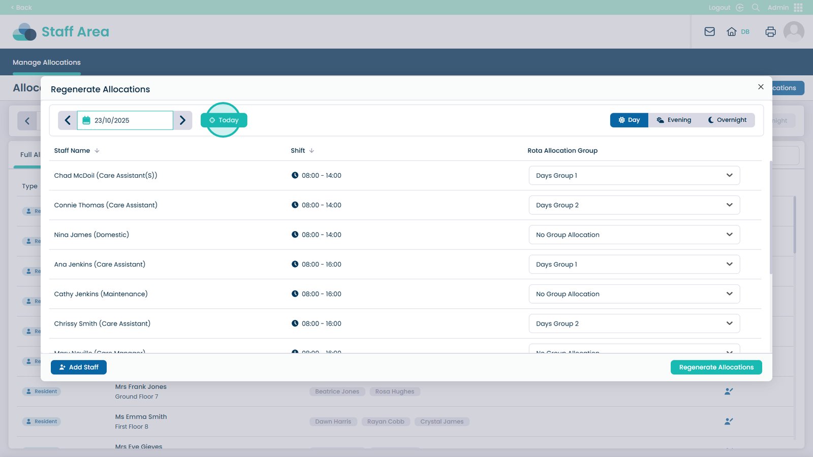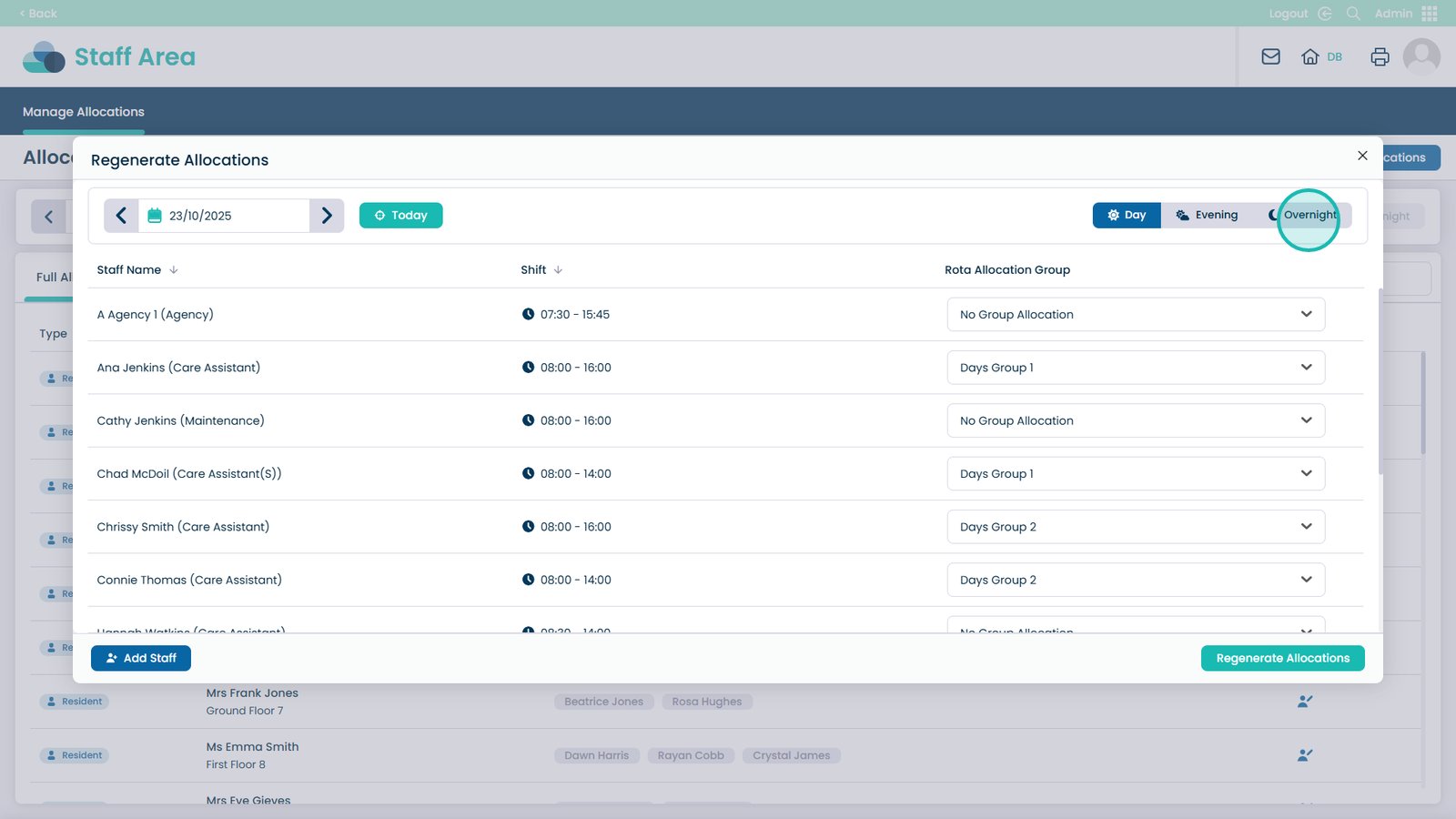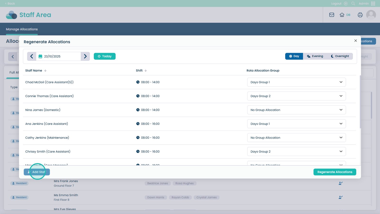 This guide provides a detailed walkthrough on how to regenerate staff allocations within the Care Control Admin App. It is designed to help managers and administrators efficiently manage staff allocations, assign team members to shifts, and update daily staffing arrangements. You’ll learn how to access the Staff Area, navigate the Manage Allocations screen, add or remove care staff, and regenerate allocations for different shift types, including Day, Evening, and Overnight.
