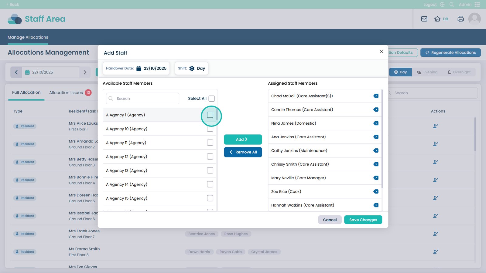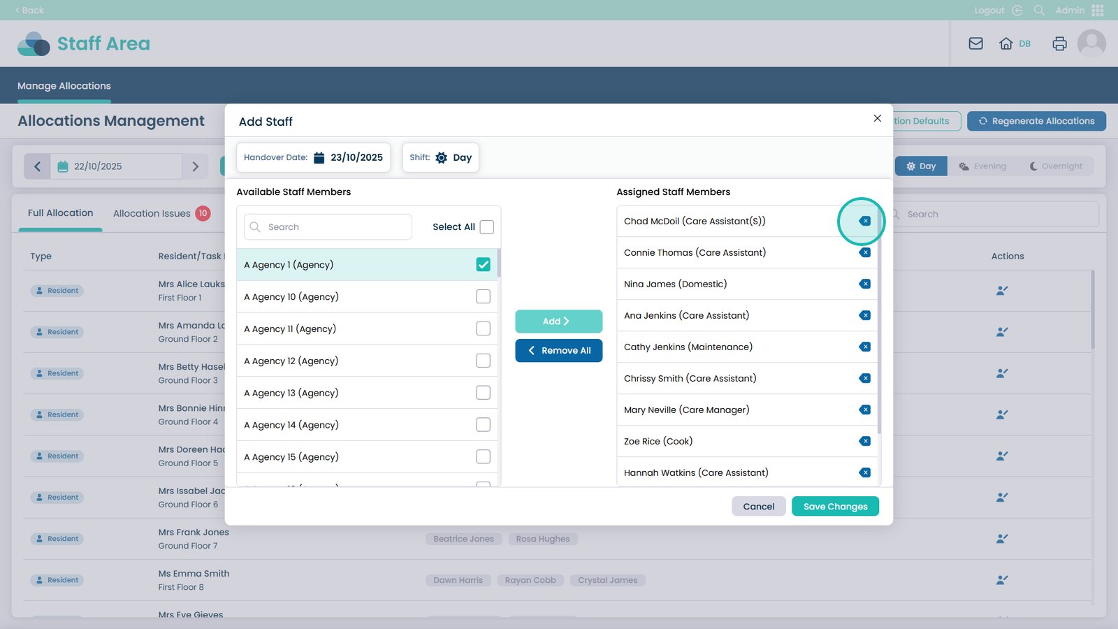 By following these steps, you can ensure that care staff are correctly assigned, agency workers are included where needed, and shift coverage is properly maintained. Keeping allocations accurate in the Care Control Admin App supports smooth care delivery, staff coordination, and compliance with workforce management standards.