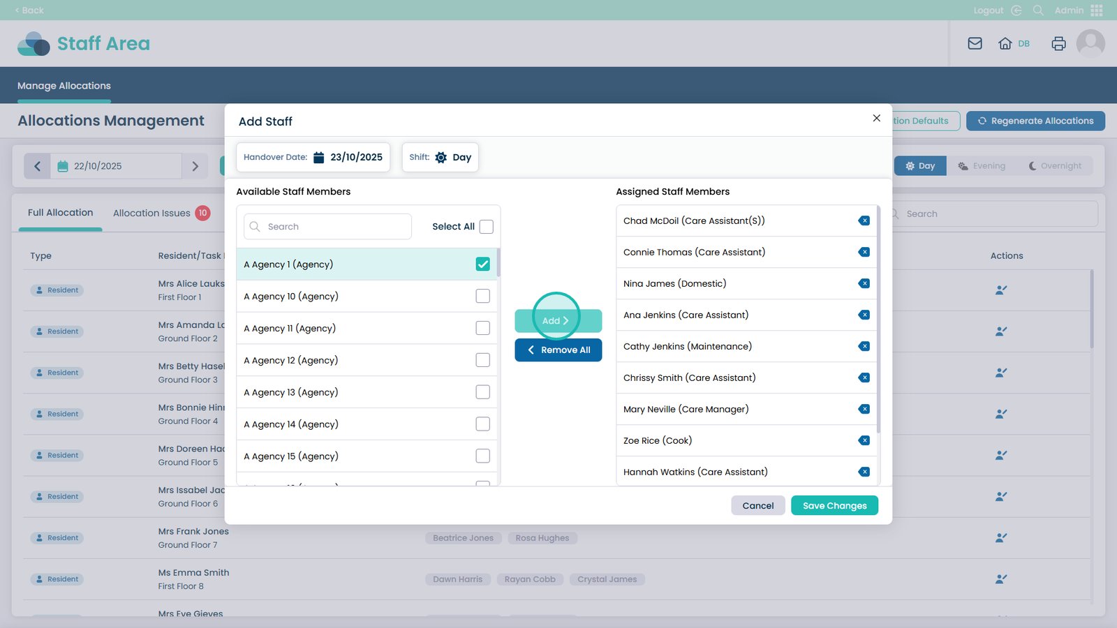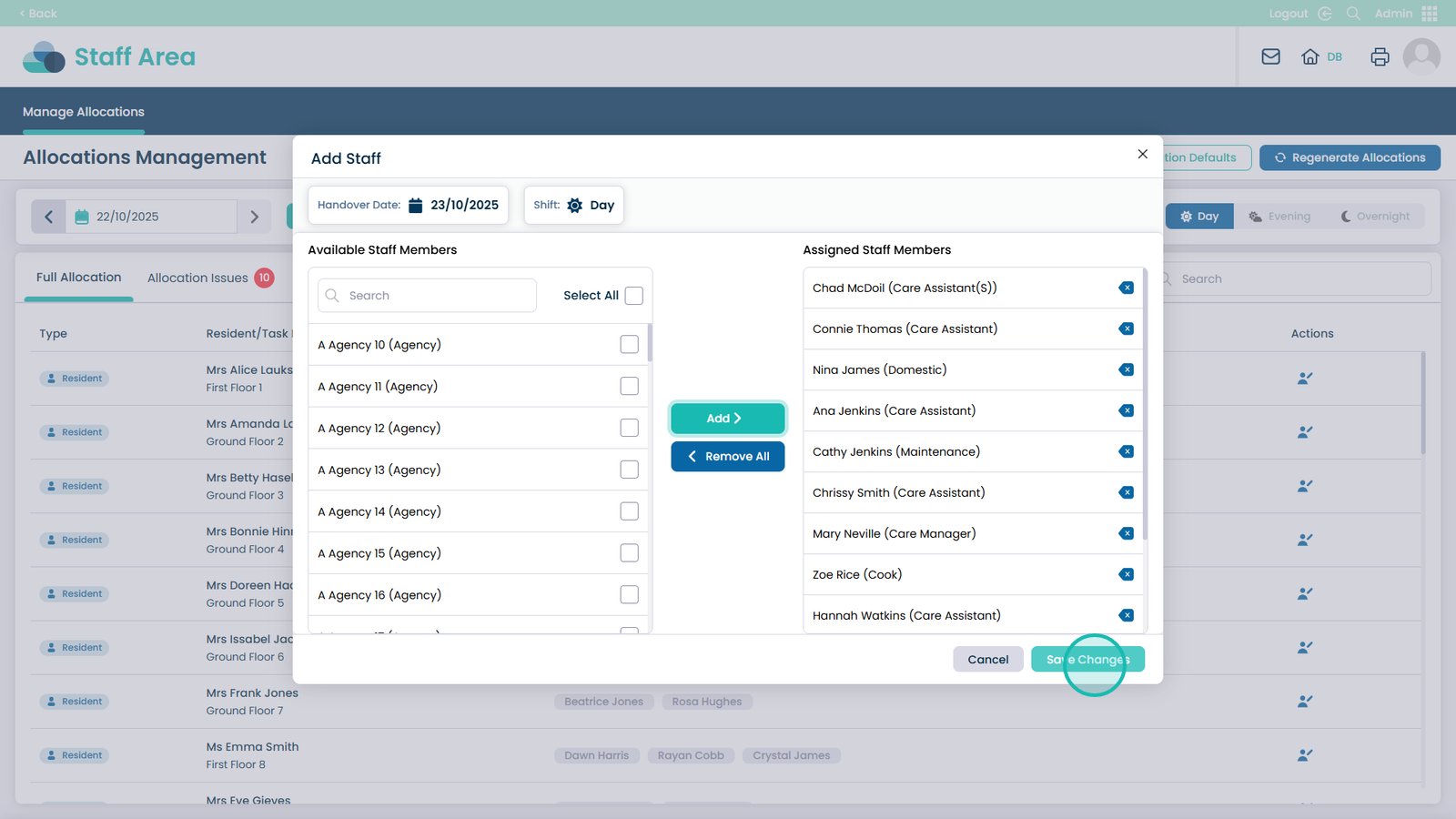 You can add further staff to the allocations by clicking this button; this is useful especially if there are agency workers required