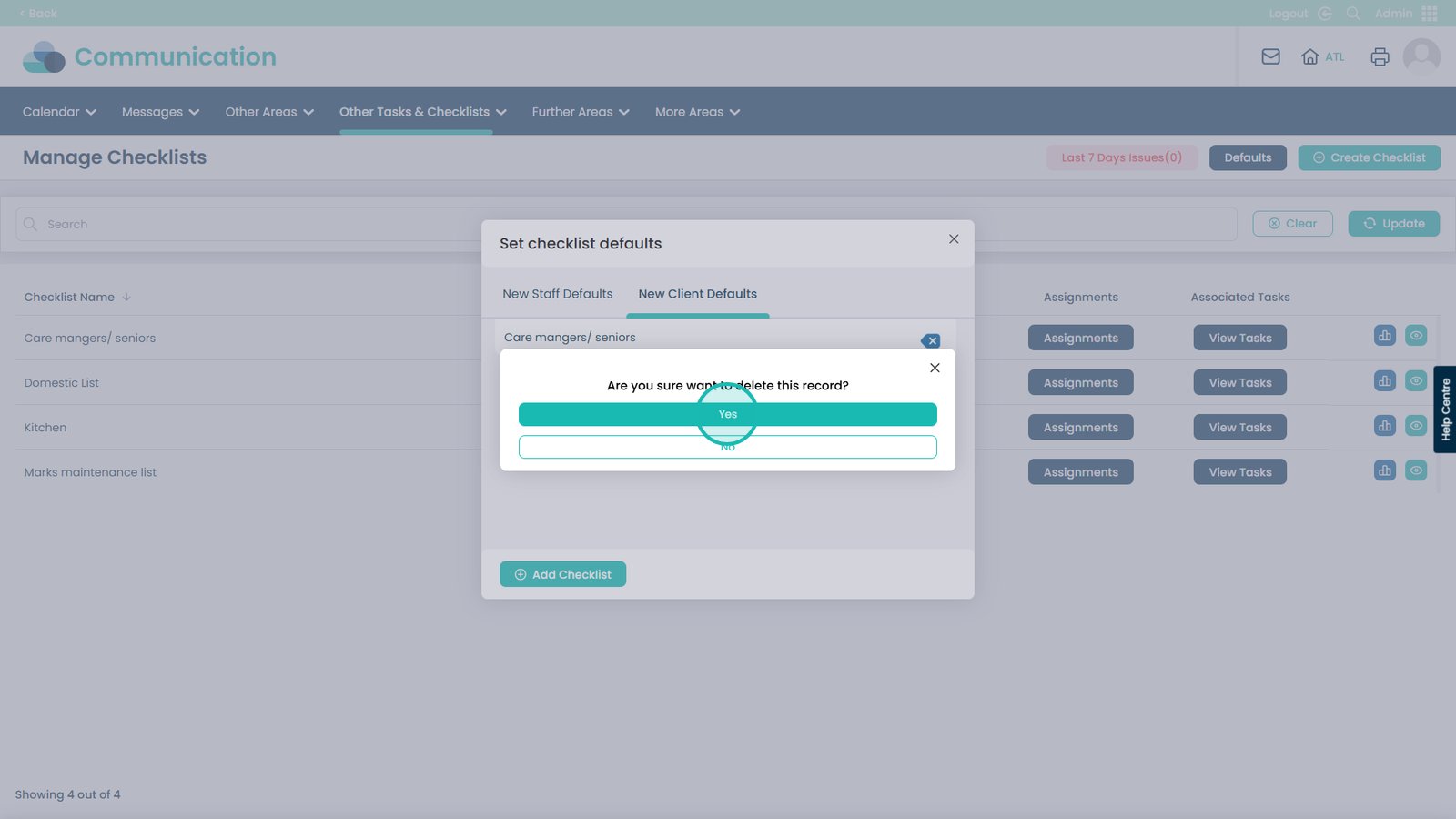 You can apply default checklists so that all the items you set as defaults are automatically attached to any new service users you create. This feature ensures that every service user starts with the same essential tasks, requirements, or assessments, without you needing to manually add them each time. By using default checklists, you save time, reduce the chance of forgetting important steps, and maintain a consistent standard of care across all new service users.
