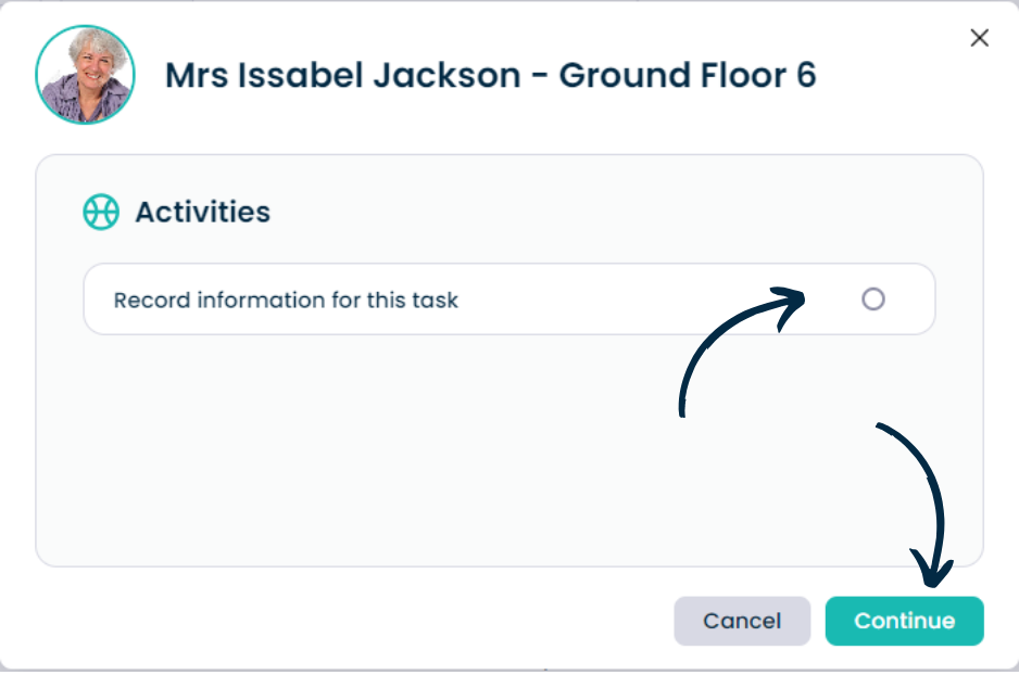 In this example, an activities task allows us to launch the activities recording screen.