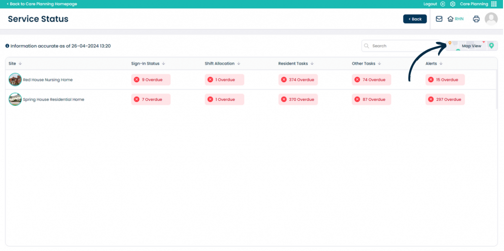 This guide will cover how to access and use the new Organisational Level Service Status within Care Control Cloud, including the new Map View.